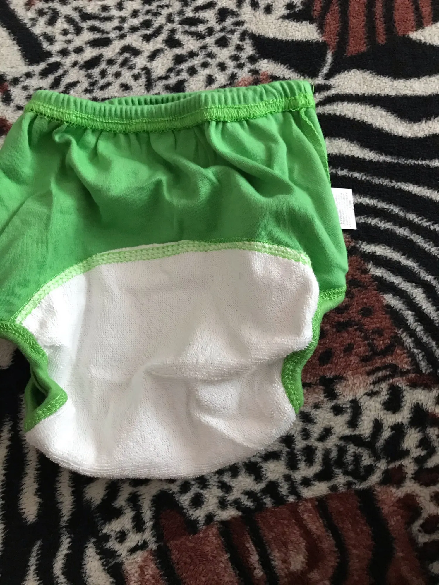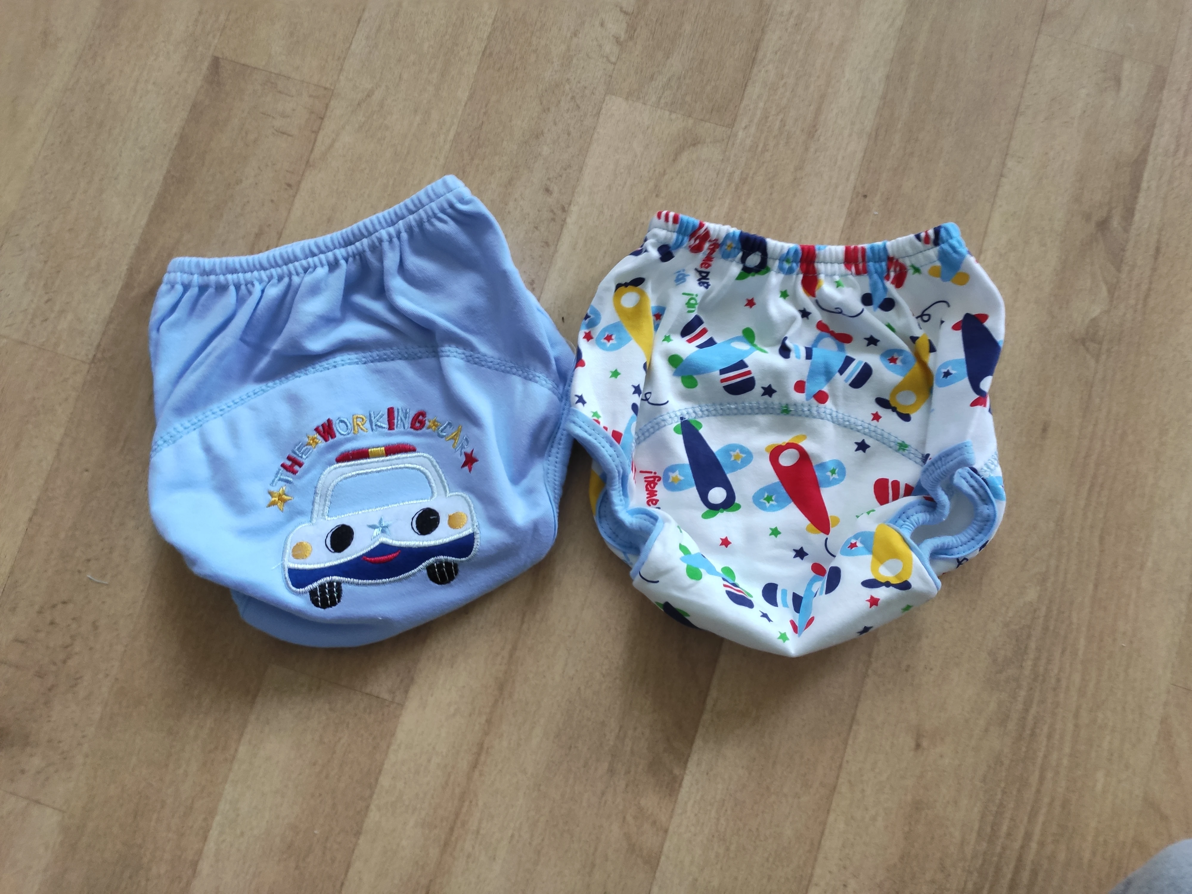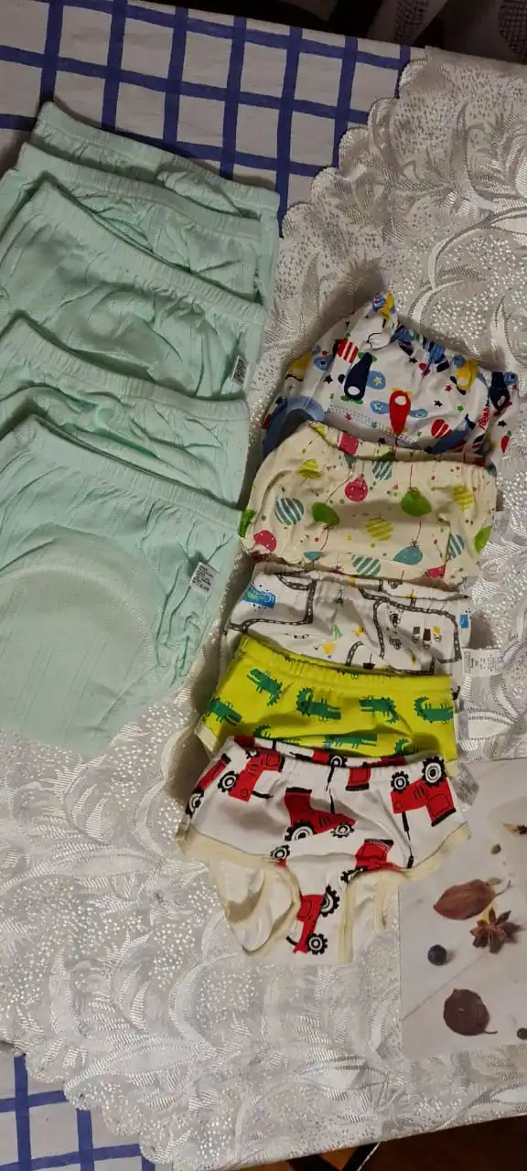 Трусики неплохого качества, внутри махровая ткань, промокают, особенно около швов, но лужи нет. На ребенка 90 см и вес 14 кг, по длинне хорошо, но очень широкие, резинки вокруг ножек очень плотные, немного давят. Модель не самая удачная, но на вид неплохая, сохнут быстро на батарее. Доставка быстрая.