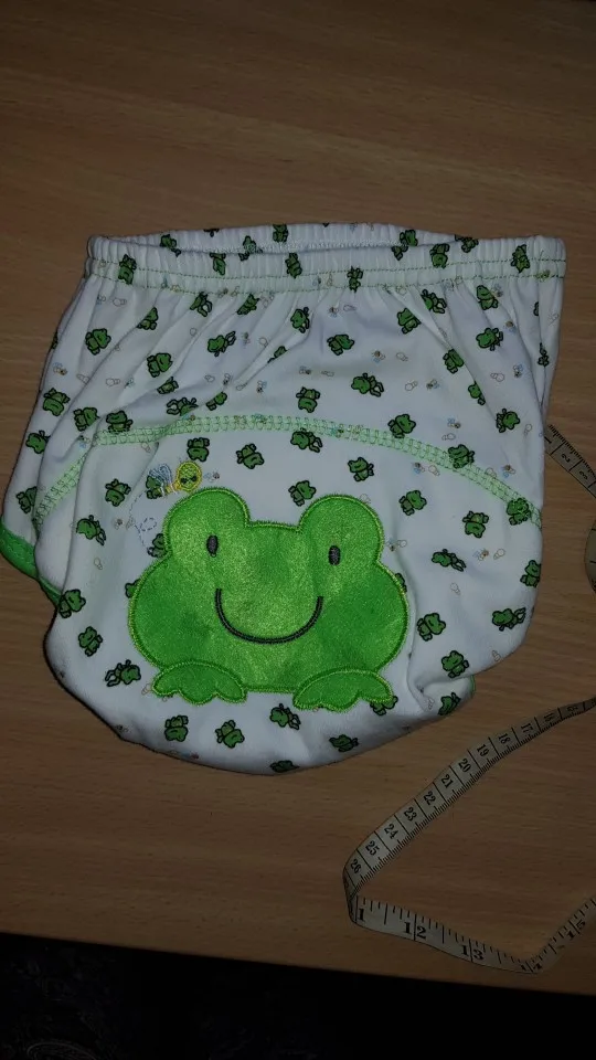 Лягушка 90 на попе жестковата, лучше без рисунка брать. Хорошая мягкая ткань, клеёнчатая вставка между слоями хлопка, прошита по краям.