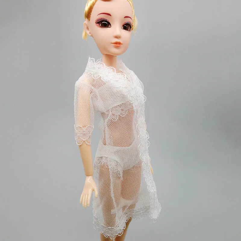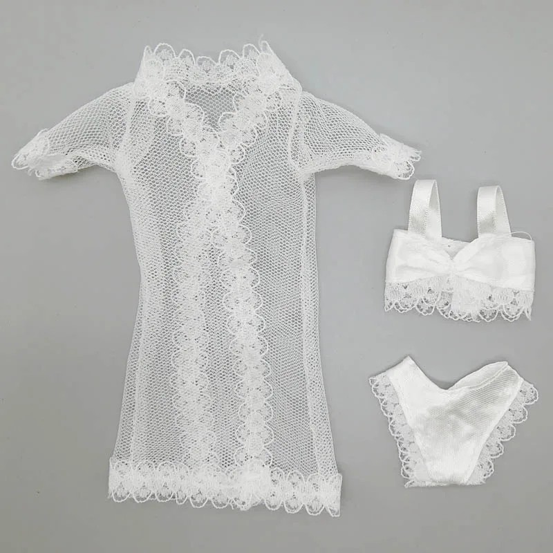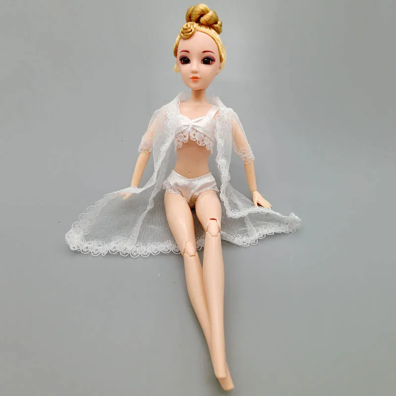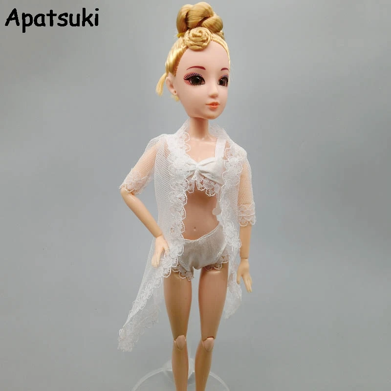 Кружевное длинное нижнее белье, бюстгальтер и нижнее белье для куклы Барби, 1 комплект, сексуальное женское белье, пижама