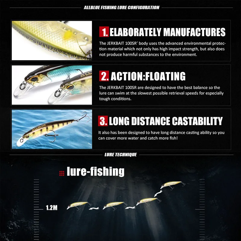 2. JERKBAIT 100SR предназначены для обеспечения наилучшего баланса, поэтому приманка может плавать с максимально медленной скоростью извлечения для особо жестких условий.