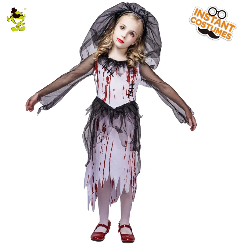 Детский кровавый ужас костюм невесты Зомби необычное платье Детское страшное платье зомби Одежда для Хэллоуина Детские костюмы