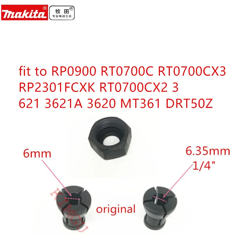 Втулка Конусная Зажимная для MAKITA 763637-1 14 "6,35 мм 763615-1 RP0900 RT0700C RT0700CX3 RP2301FCXK RT0700CX2 3621 3621A 3620 MT361 DRT50Z