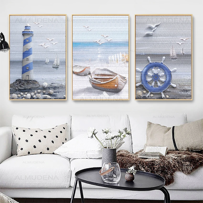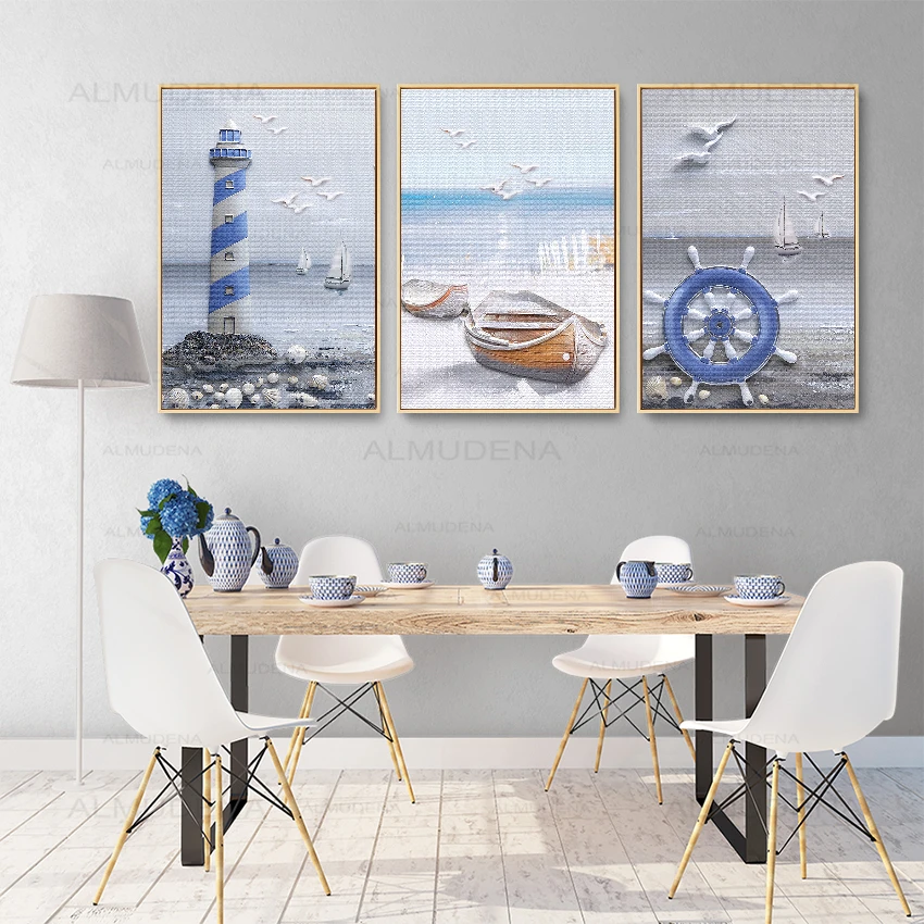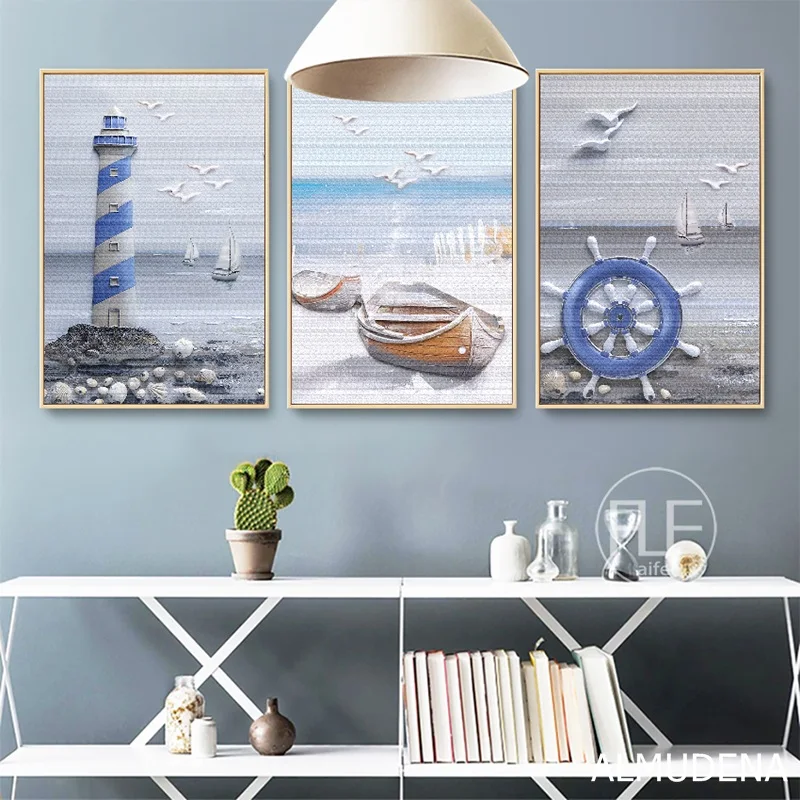 Плакаты и принты в скандинавском стиле, морской пейзаж, маяк, канав...