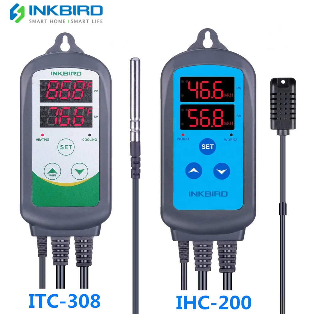 INKBIRD комбо Набор Предварительно проводной цифровой Дуральный сценический регулятор влажности IHC-200 и нагревательный регулятор температуры ITC-308Конструкция Plug and play, проста в использовании;