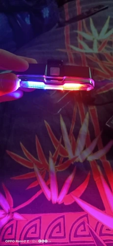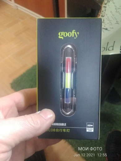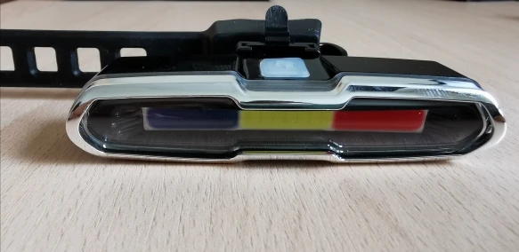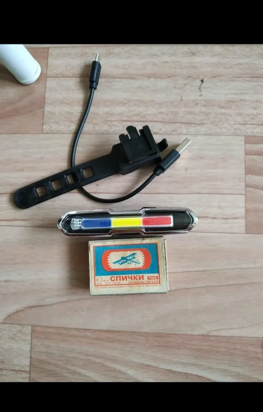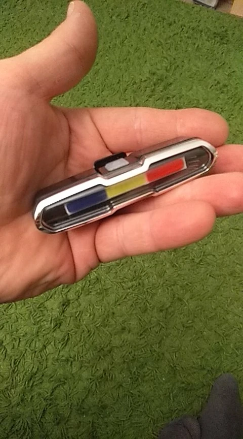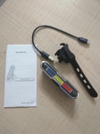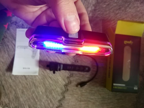 Он отличный и с очень сильным светом. Он заряжается кабелем и имеет кнопку, вы можете выбрать красный цвет, белый или синий и различные формы ритма света. Чтобы выключить свет, кнопка должна быть плотно закреплена. В любом случае, очень хорошая покупка