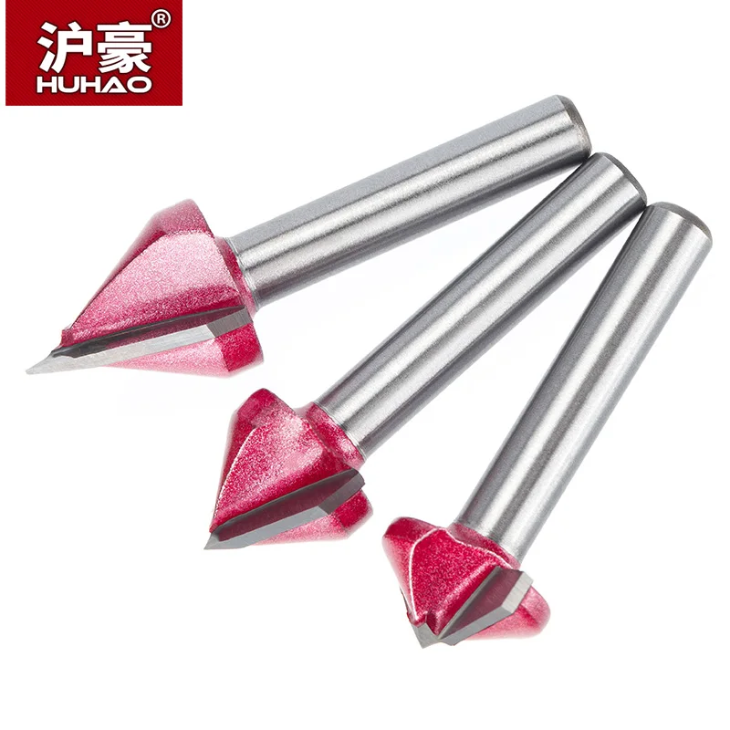 HUHAO 1 шт. 6 мм V Bit CNC твердосплавная Концевая фреза, 3D фрезы для дерева, вольфрама, деревообрабатывающая фреза 60 90 120 150