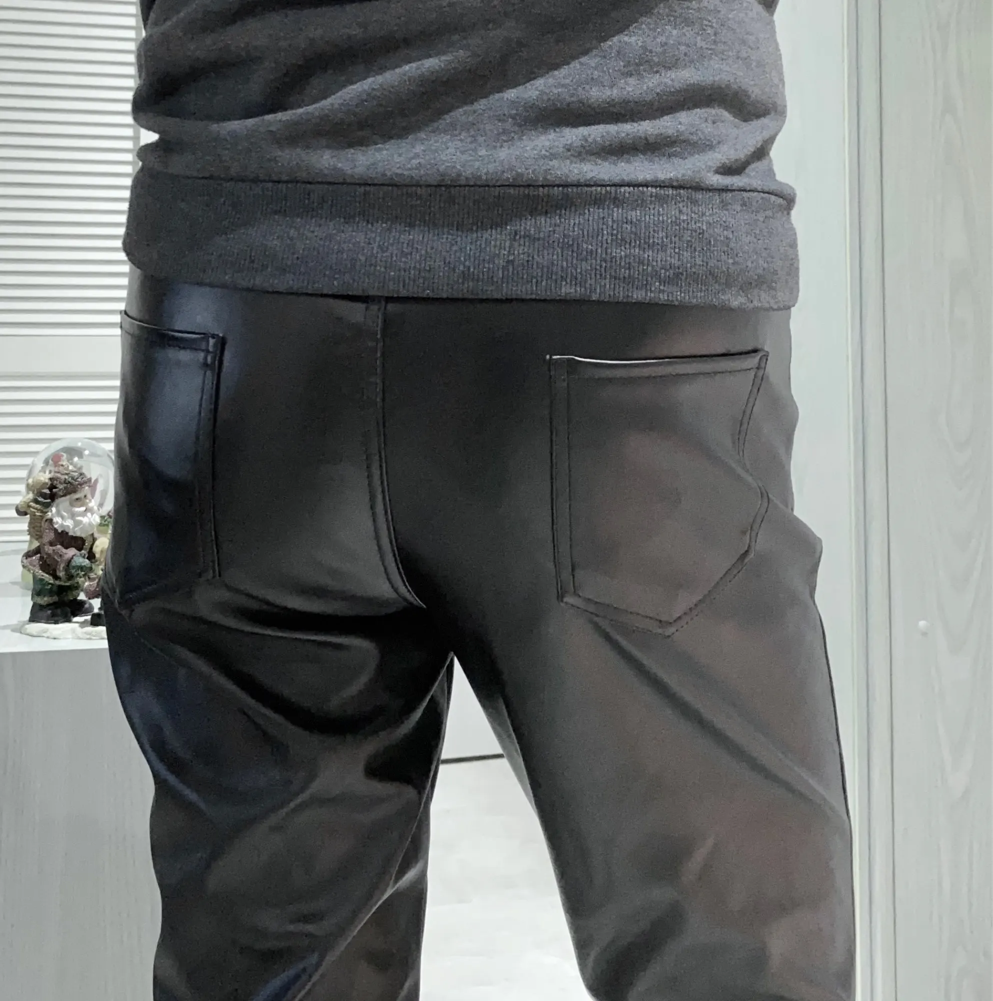 Мужские облегающие брюки Idopy из искусственной кожи с пятью карманами