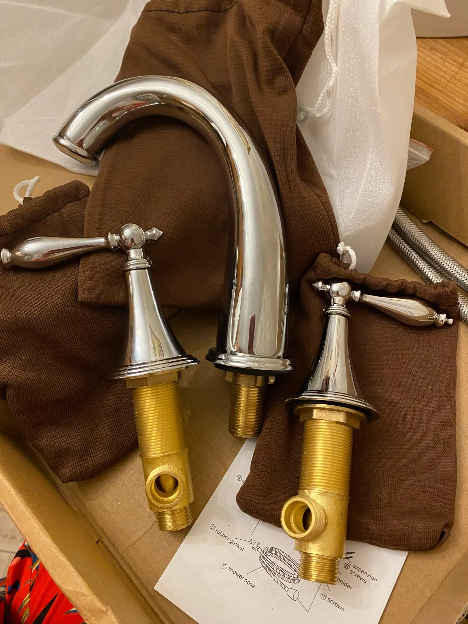 Смеситель для раковины, античный латунный, с двумя ручками, 8206