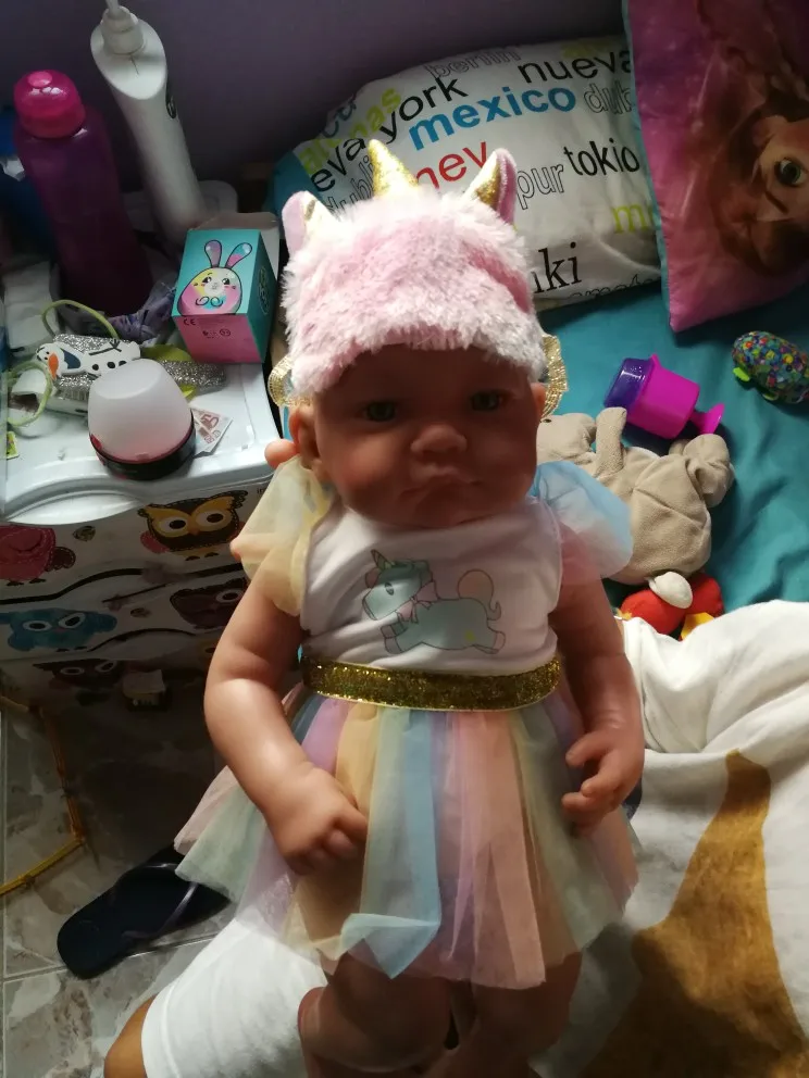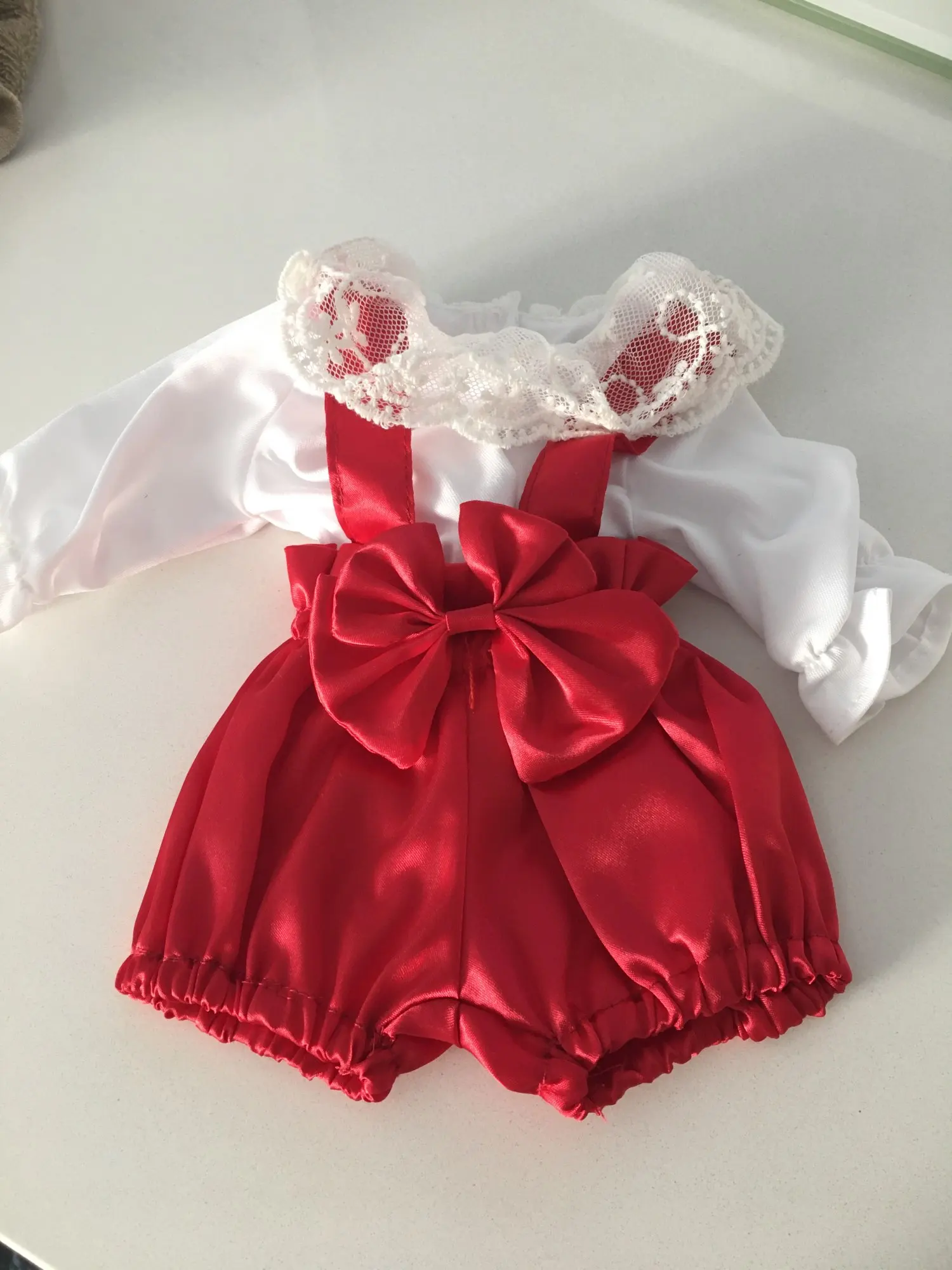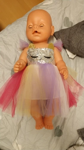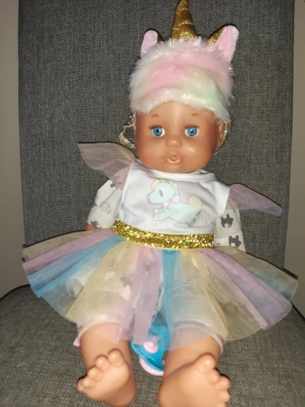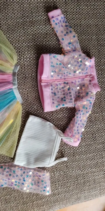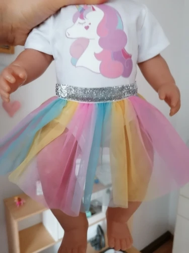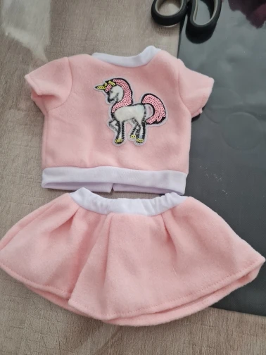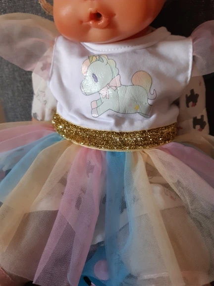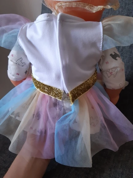 Наряд красивый. Бодик подошёл на реборн 42 см с силиконовым туловищем. Юбка не застегнулась.