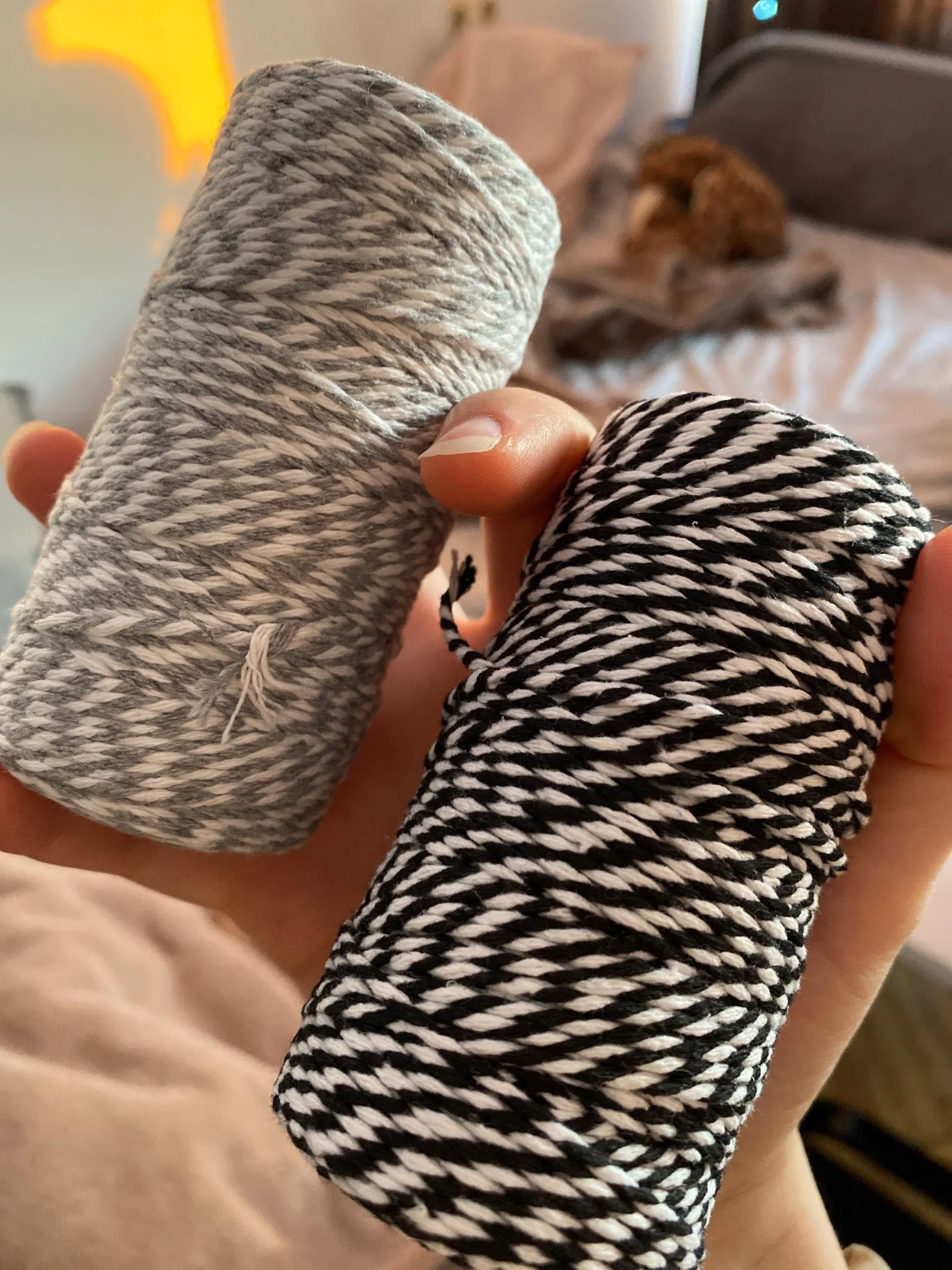 Хорошая тоненькая хлопковая веревка, для упаковки шоколада, конфет идеально подойдёт на новый год. Длины хватит надолго, я рекомендую продавца, пришло все вместе в одном пакете (была ещё куча новогоднего декора) в Краснодар за 20 дней. спасибо)