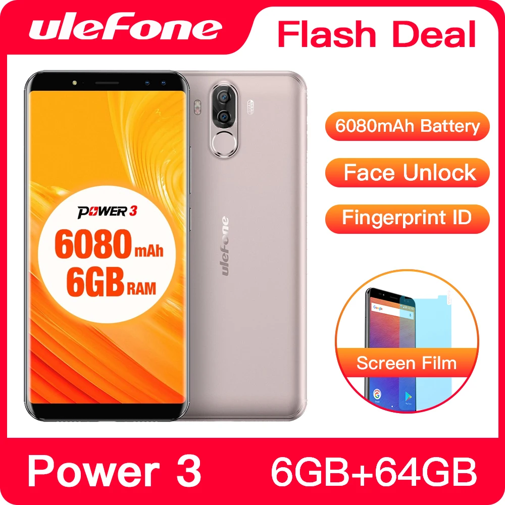 Ulefone Power 3 смартфон FHD + экран 6080 мАч большой аккумулятор Android мобильный телефон Face ID 6 ГБ + 64 ГБ Touch ID 21MP камера Сотовый телефон
