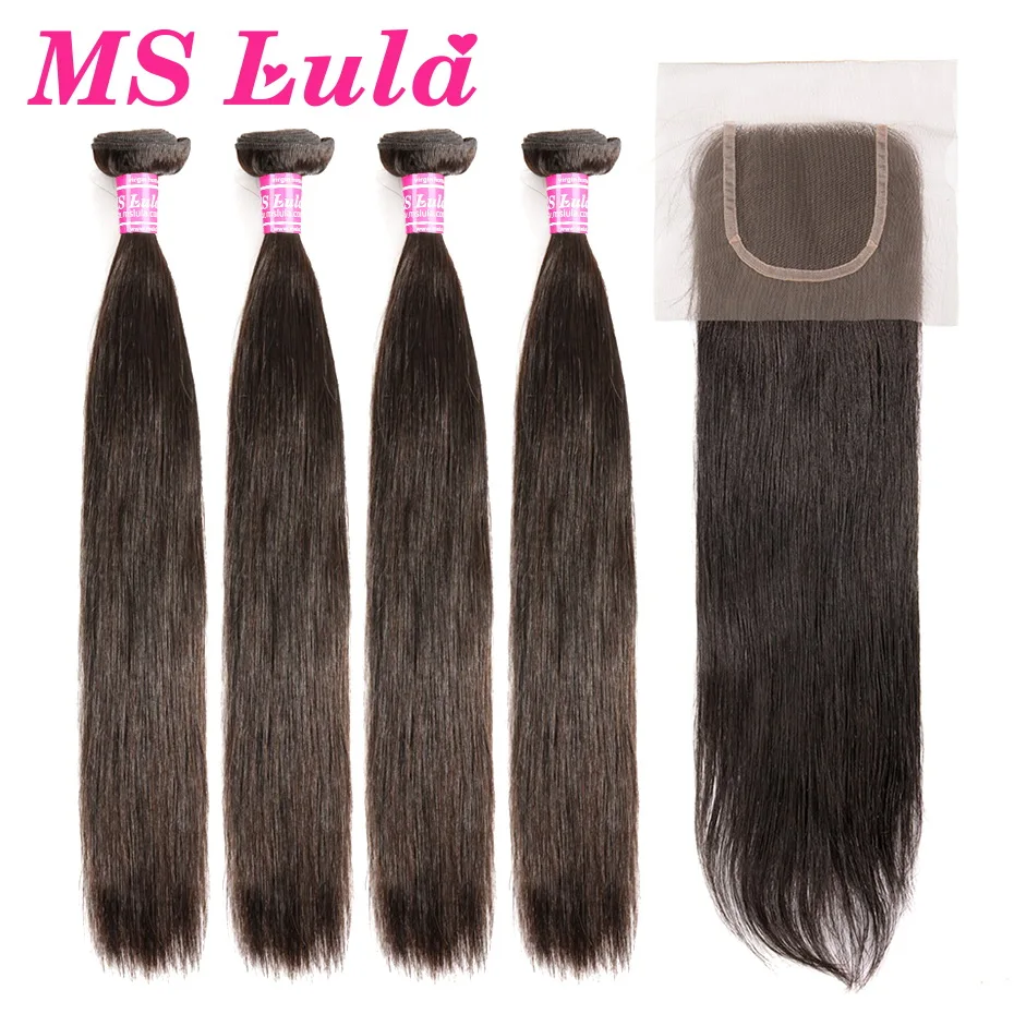 Волосы Ms Lula, 4 пряди, бразильские прямые с прозрачной застежкой 4x4, 100% человеческие волосы без повреждений, пряди с закрывающимися волосами для наращивания