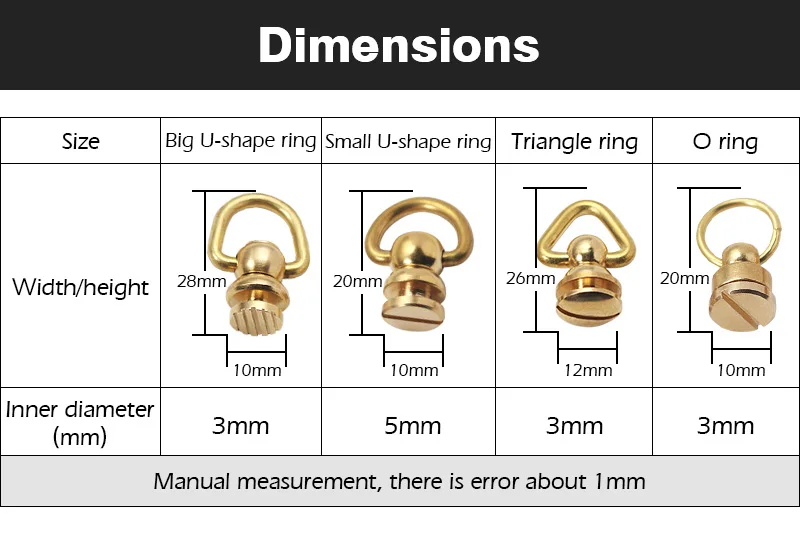 【Легко устанавливается 】 легко крепится и дает латунные заклепки, латунные заклепки для кожи, заклепки d-образное кольцо для кошелька латунные шаровые Шпильки заклепки отлично подходят для Diy бумажников игрушки кошелек воротник ремень Сумочка обувь чехол для мотоцикла меховые джинсы винты будут зафиксированы на плоской головке шпильки днище.