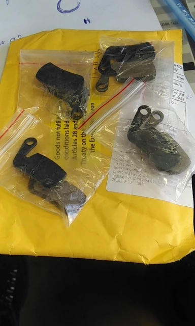 4 пары тормозов получены. Выглядят также как и на фото. У нас зима и поэтому я не могу проверить их действие.