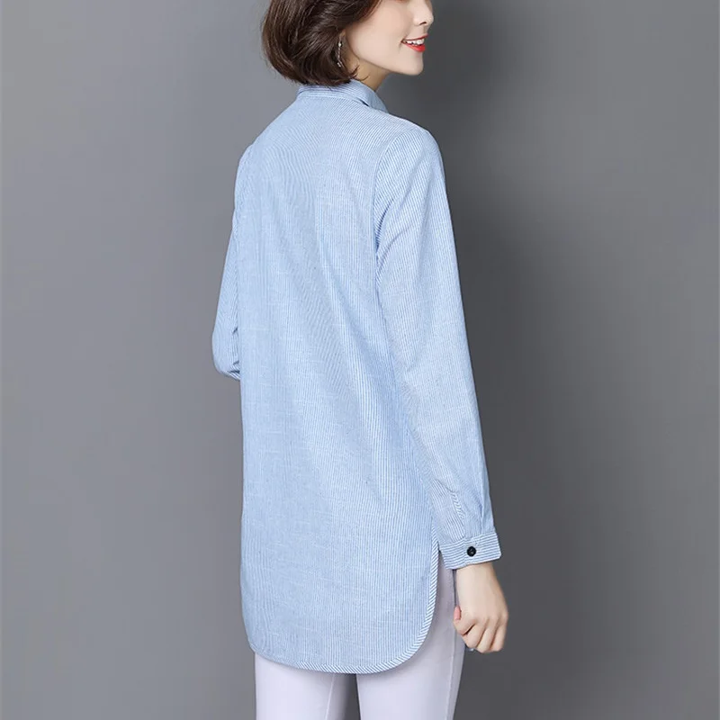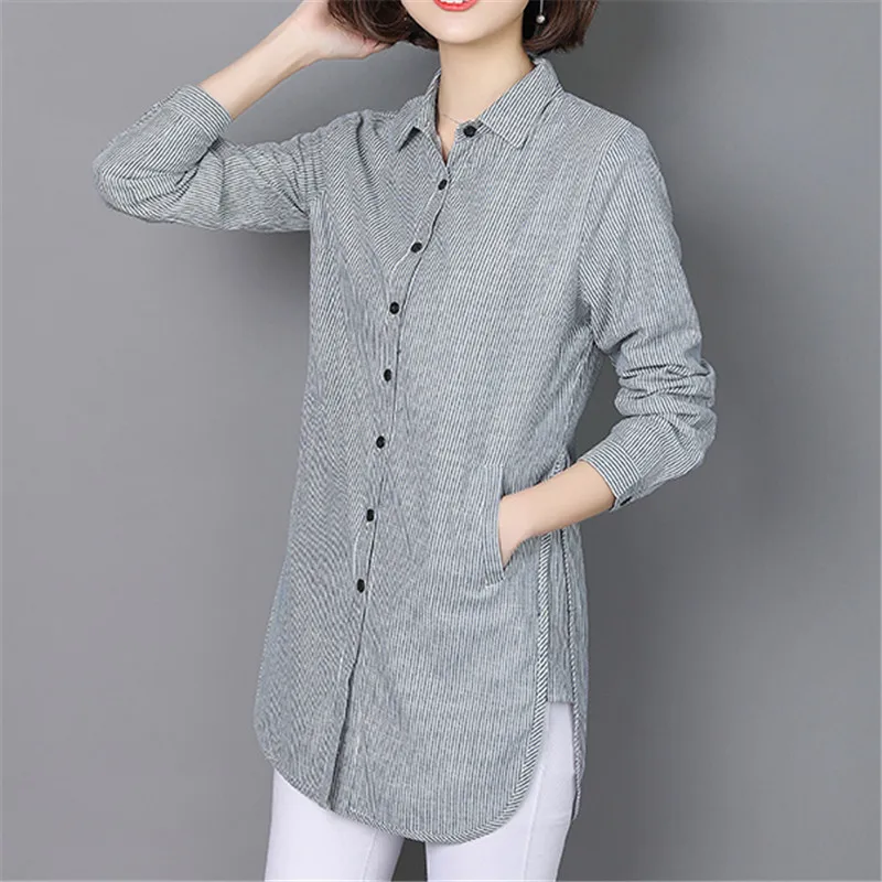 Блузка женская в полоску, Повседневная рубашка для праздников, размера плюс, весна-осень