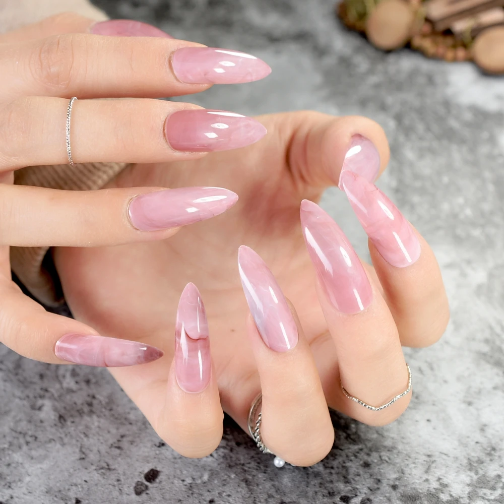 Модные ультрафиолетовые Пластиковые ногти очень длинные глубокие розовые заостренные ногти дизайн ногтей украшение вечерние полный обертывание 24 шт. с клеем, стикер