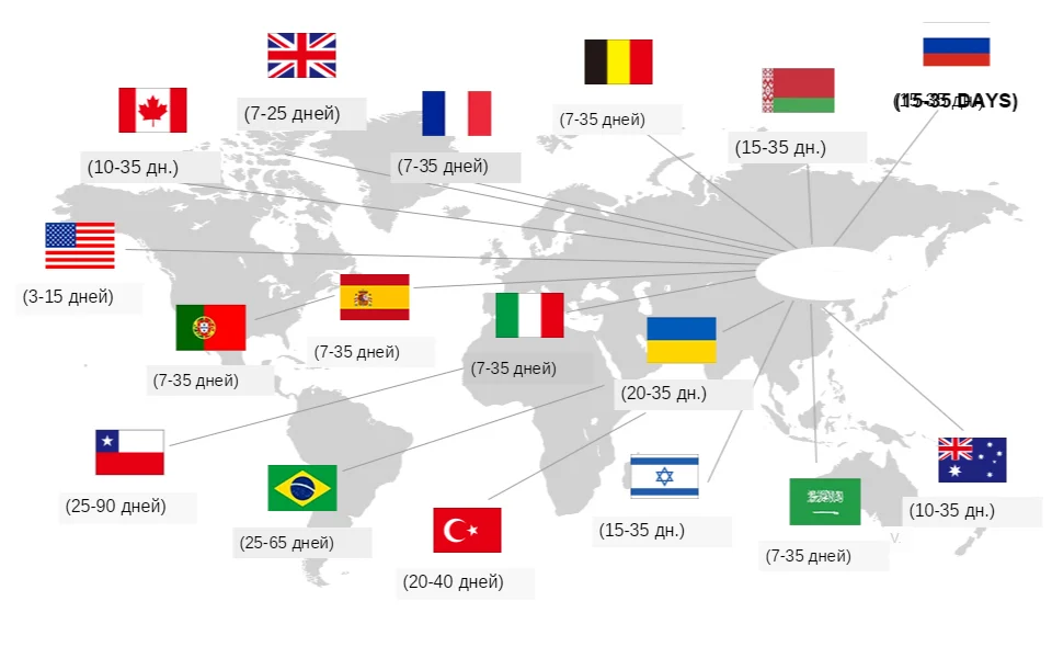 (3) Примерно 10-45 рабочих дней при отправке в: все остальные страны;