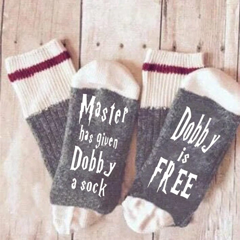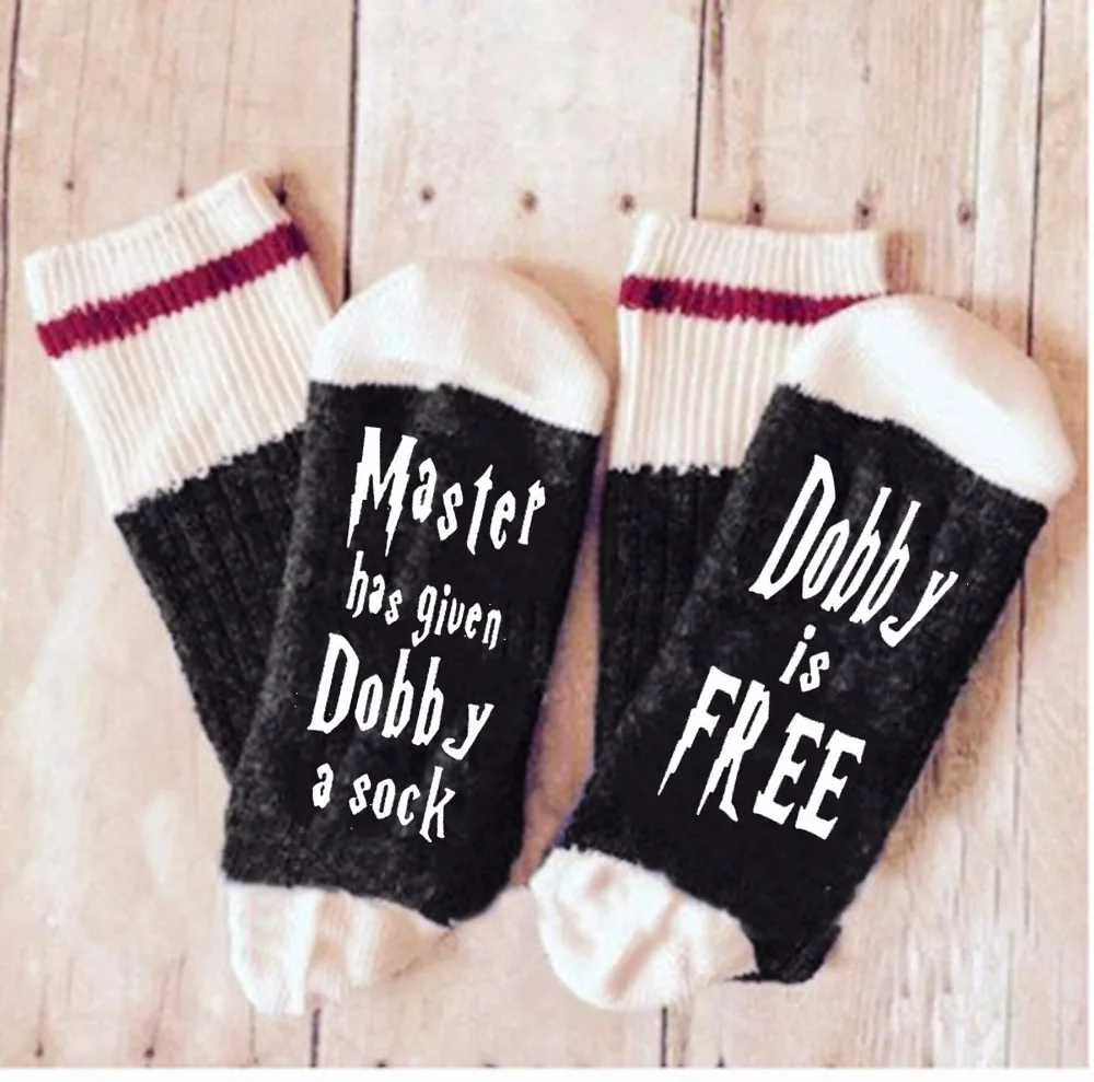 Здравствуйте! Добро пожаловать в наш магазин! Размер: европейский - 35-43, американский - 5-9. Качество и лучший сервис находятся на первом месте. Все покупатели - наши друзья. С модным дизайном, 100% новые и высококачественные! Хлопок – 95%, эластан – 5% Допускается машинная стирка, долговечный принт. Носки на заказ с надписью «Хозяин дал Добби носок» на одном носке и «Теперь Добби свободен» - на другом. Ниже предоставлены цвета и принты на выбор.