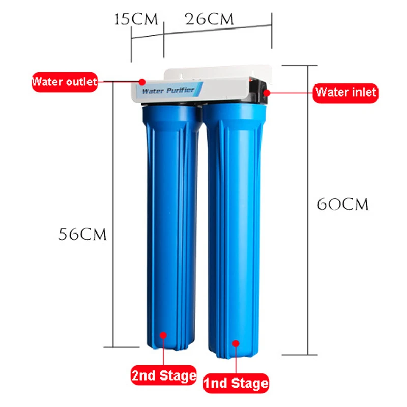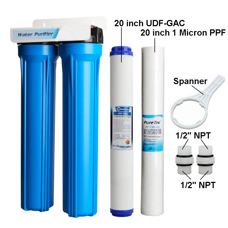 2-уровневый фильтр для воды, 20 дюймов, взрывозащищенный фильтр для очистки воды с 20UDF-GAC-1 микрон PPF, все фитинги и гаечный ключ