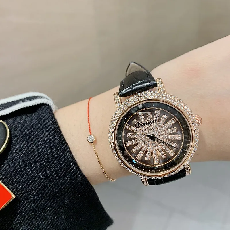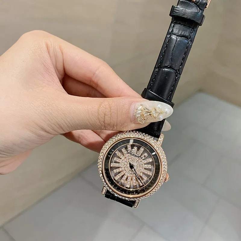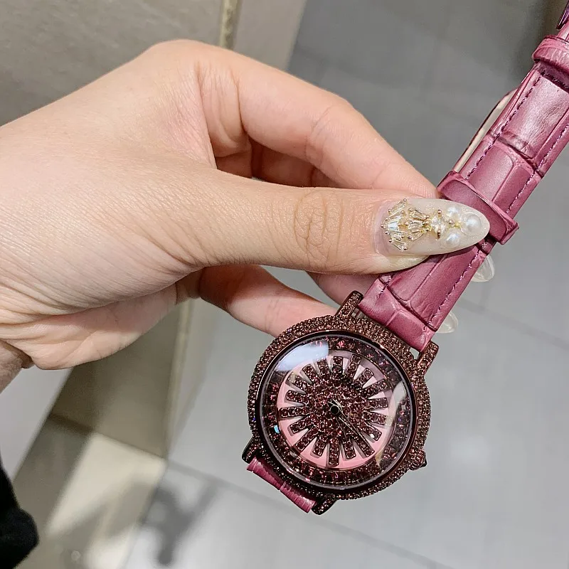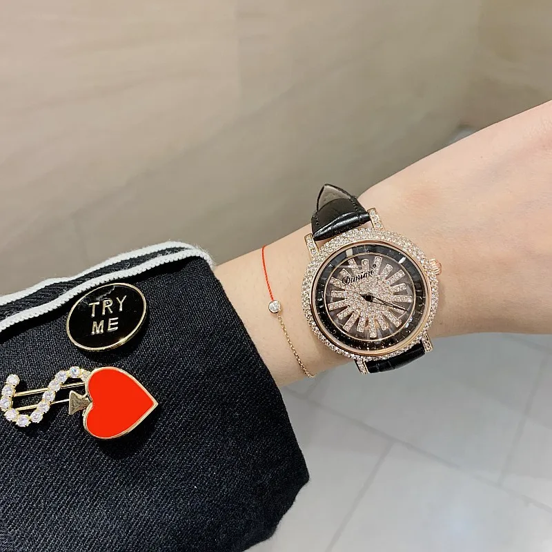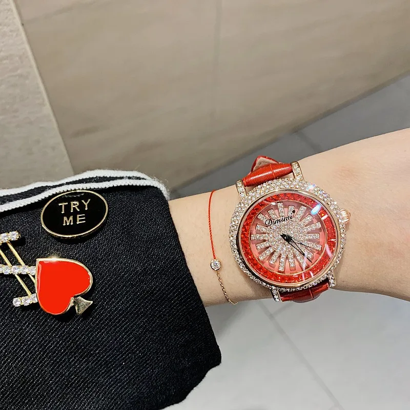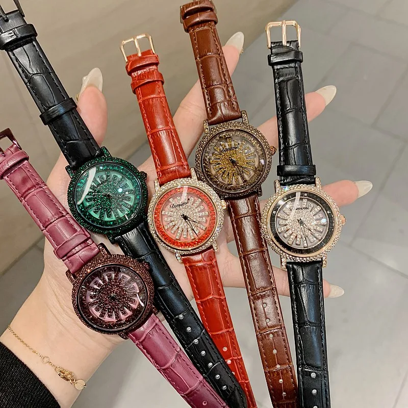 Лидер продаж 2020, женские часы из нержавеющей стали, женские Сияющие вращающиеся наручные часы с большим алмазным камнем, зеленые часы, часы