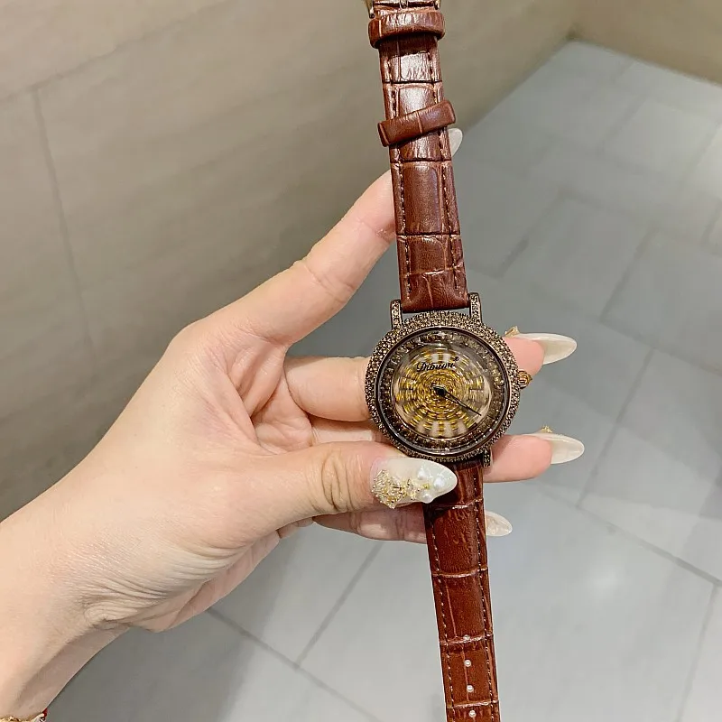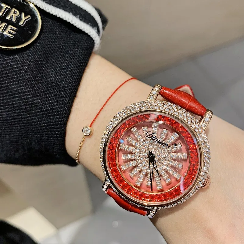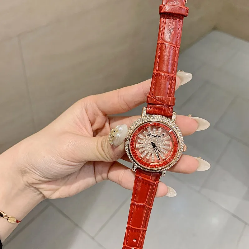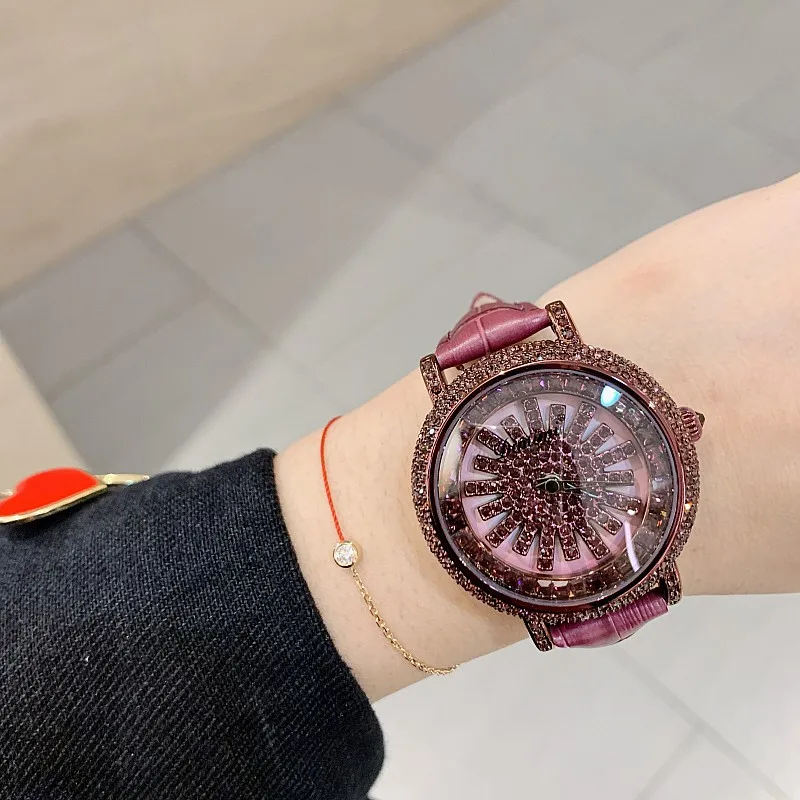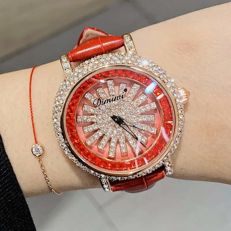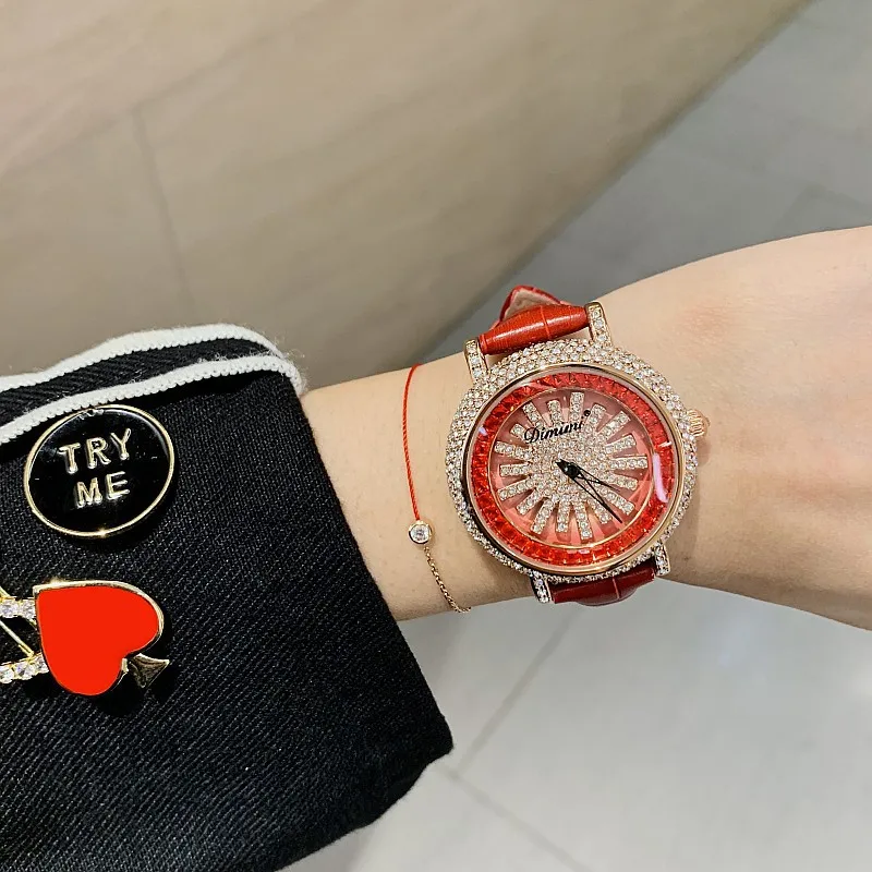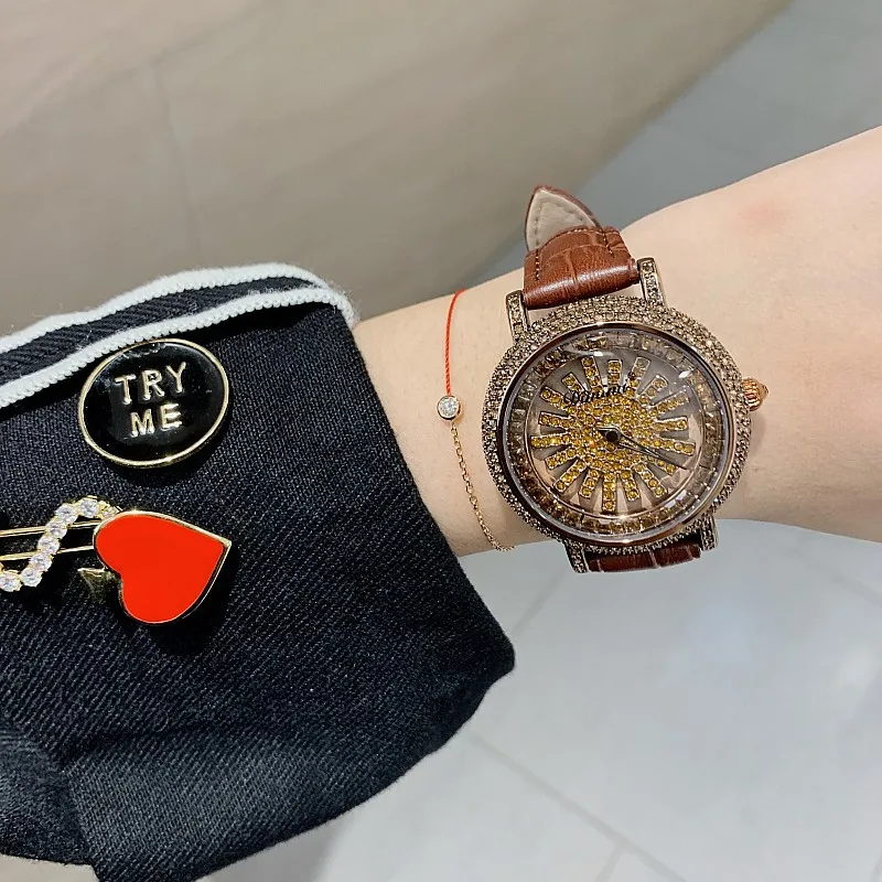 Лидер продаж 2020, женские часы из нержавеющей стали, женские Сияющие вращающиеся наручные часы с большим алмазным камнем, зеленые часы, часы