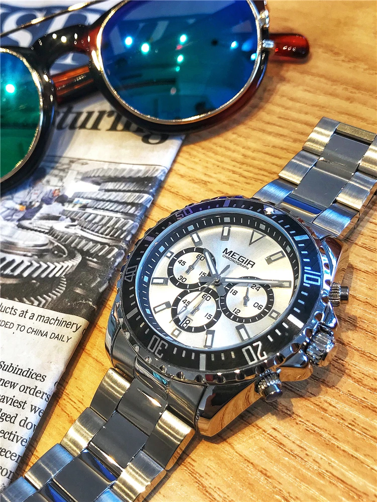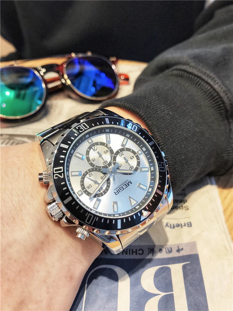 Часы мужские кварцевые из нержавеющей стали, с хронографом