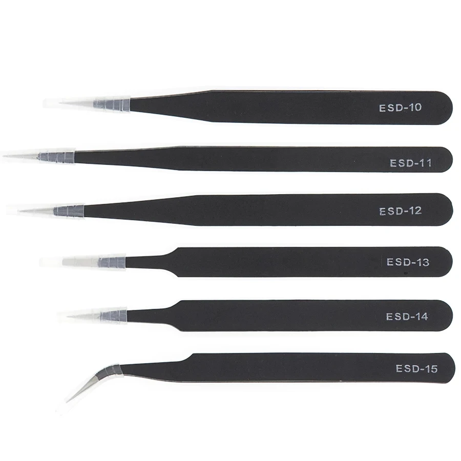 Промышленные пинцеты 1,5 мм, набор антистатических пинцетов из нержавеющей стали для ремонта мобильный телефон, прецизионный щипцы ESD ESD10-ESD15
