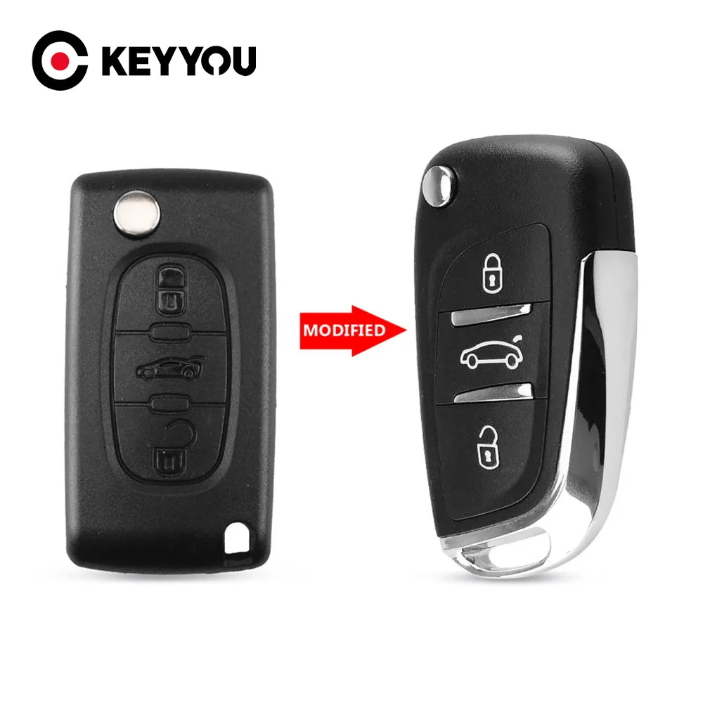 Модифицированная Трехкнопочная задняя крышка KEYYOU, необработанное лезвие без канавки CE0536 для PEUGEOT 207 307 308