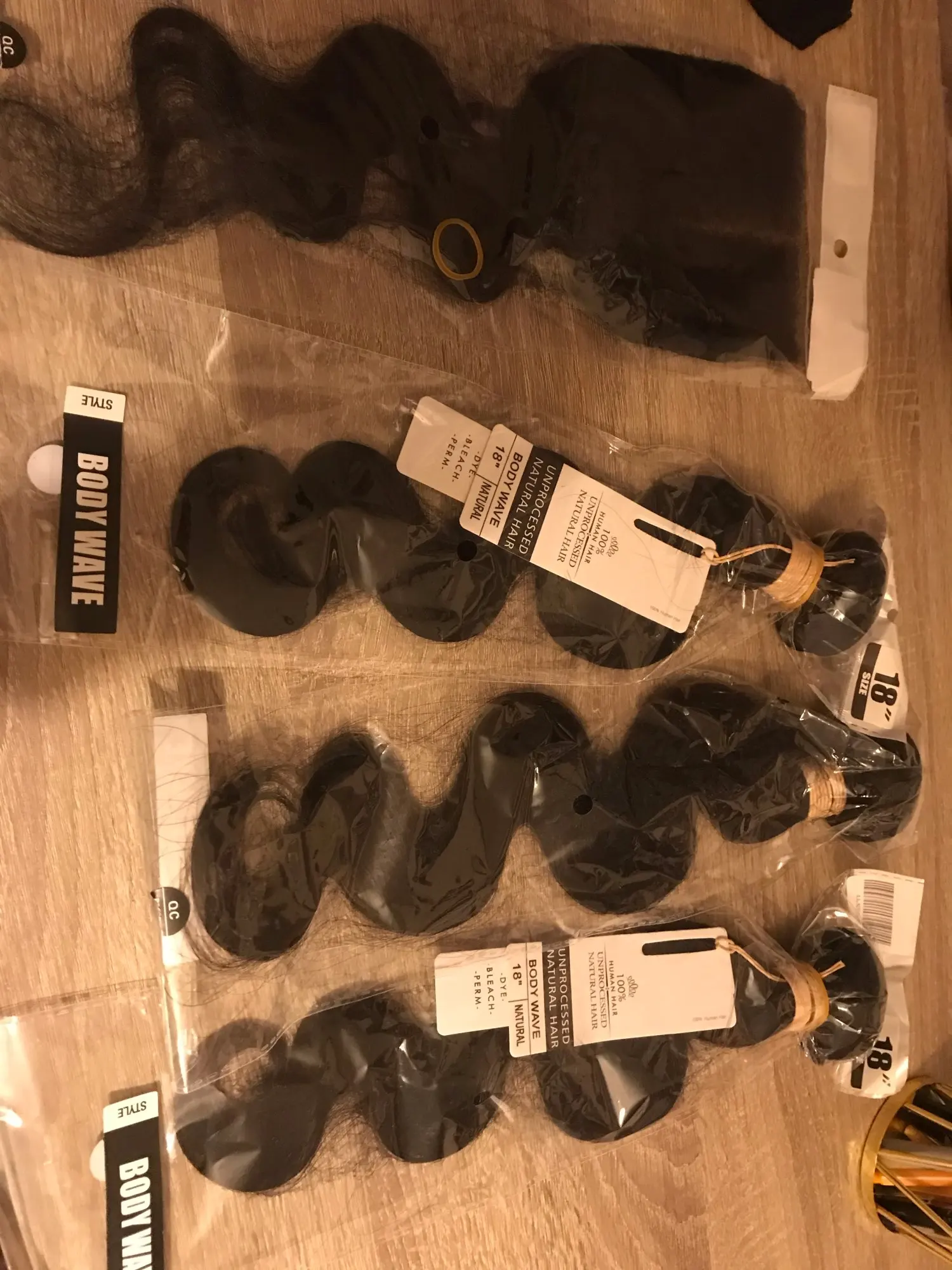 Волосы действительно мягкие и не имеют запаха. Это хорошо подходит для окраски и отбеливания. На застежке было немного летучей мыши, но ничего, что воск палка не может исправить и доставка была быстрой. Я получил закрытие 24,26,28 и 18 дюймов. Просто не удалось сфотографировать комплект размером 28 дюймов. Я отправлю обновленную информацию при установке волос