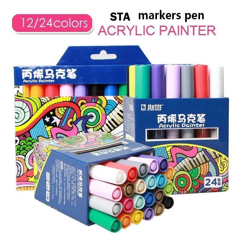 STA 1000 12/24/28 цветов акриловые краски для рисования на водной основе художественные маркеры для школы принадлежности для рисования акварелью Новинка