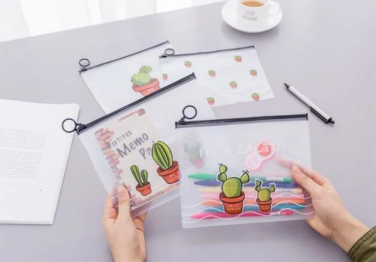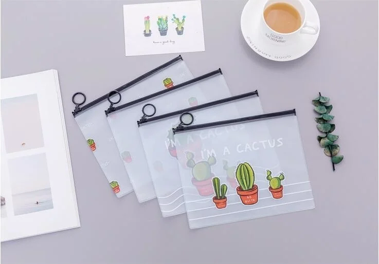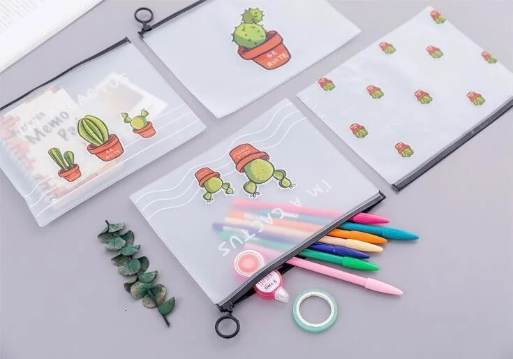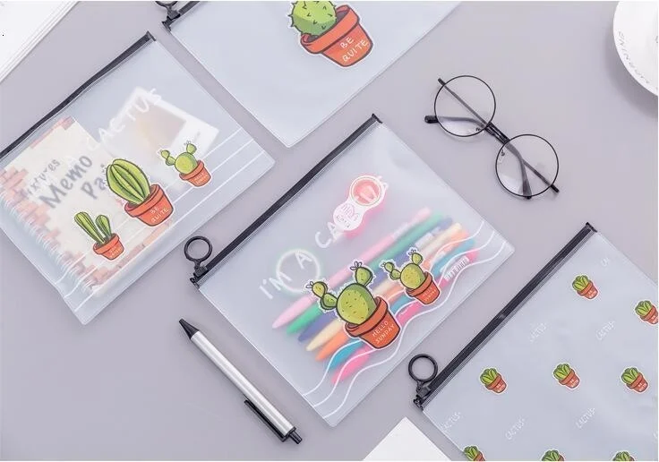 Новые корейские школьные Канцтовары Lytwtw, 2 шт., милые Креативные каваи, конверт из ПВХ г., полупрозрачные папки с изображением кактуса