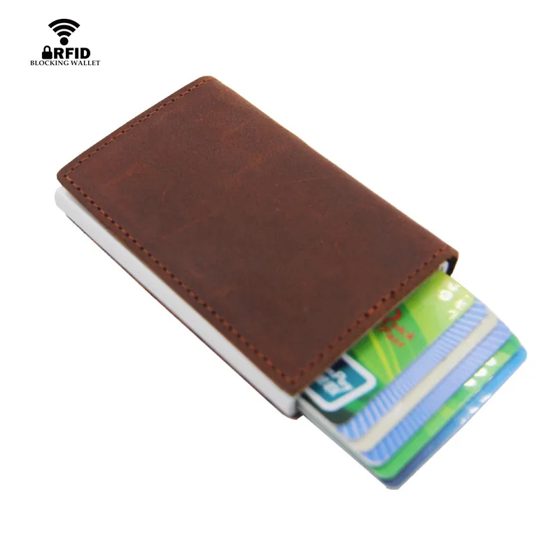 BISI GORO2021 унисекс кредитница из натуральной кожи Винтаж кошелек Crazy Horse кожа Rfid алюминиевая Кредитная карта Бизнес держатель для карт