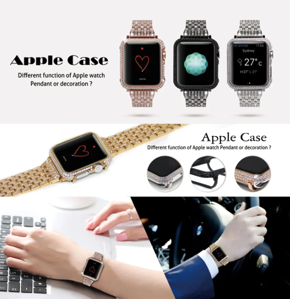 Чехол для Apple Watch, 38424044 мм, с кристаллами и бриллиантами, 18 К