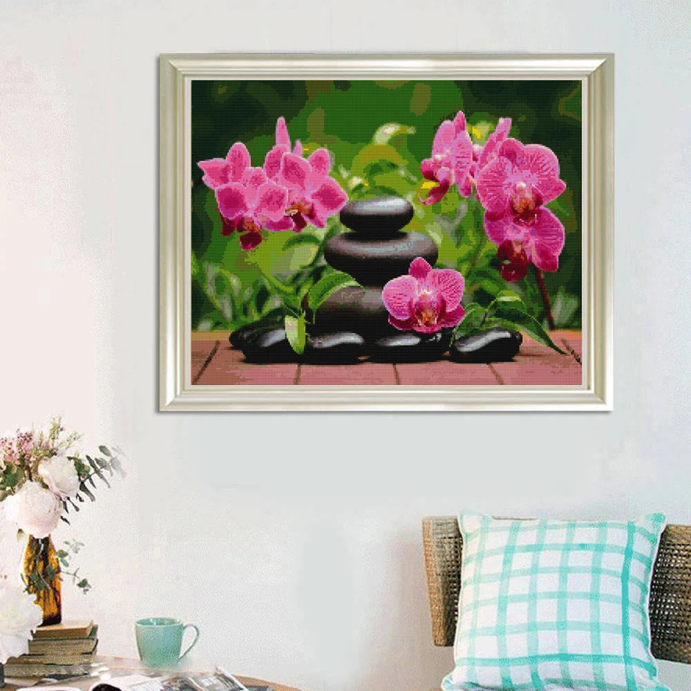Картина из квадратных страз, вышивка крестиком, черные камни, "сделай сам", 5d, алмазная вышивка, Орхидея, рукоделие цветы алмазы мозаика