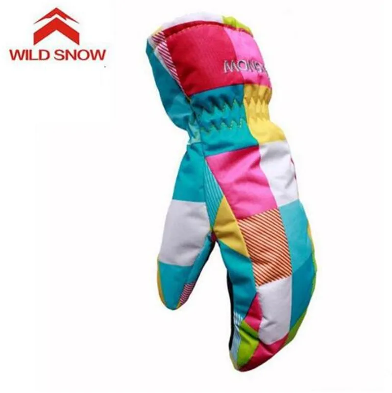 Зимние лыжные перчатки для мальчиков и девочек WILD SNOW, ветрозащитные водонепроницаемые милые лыжные перчатки, водонепроницаемые теплые перчатки, варежки