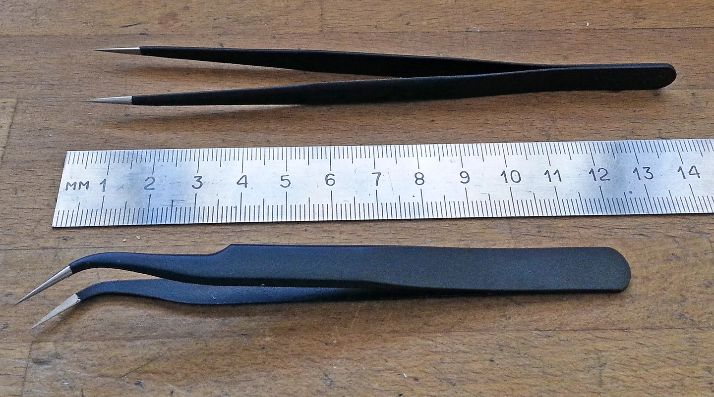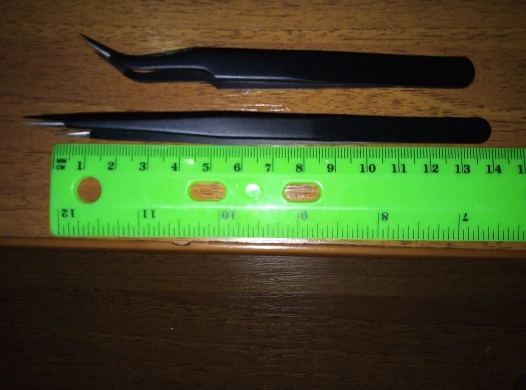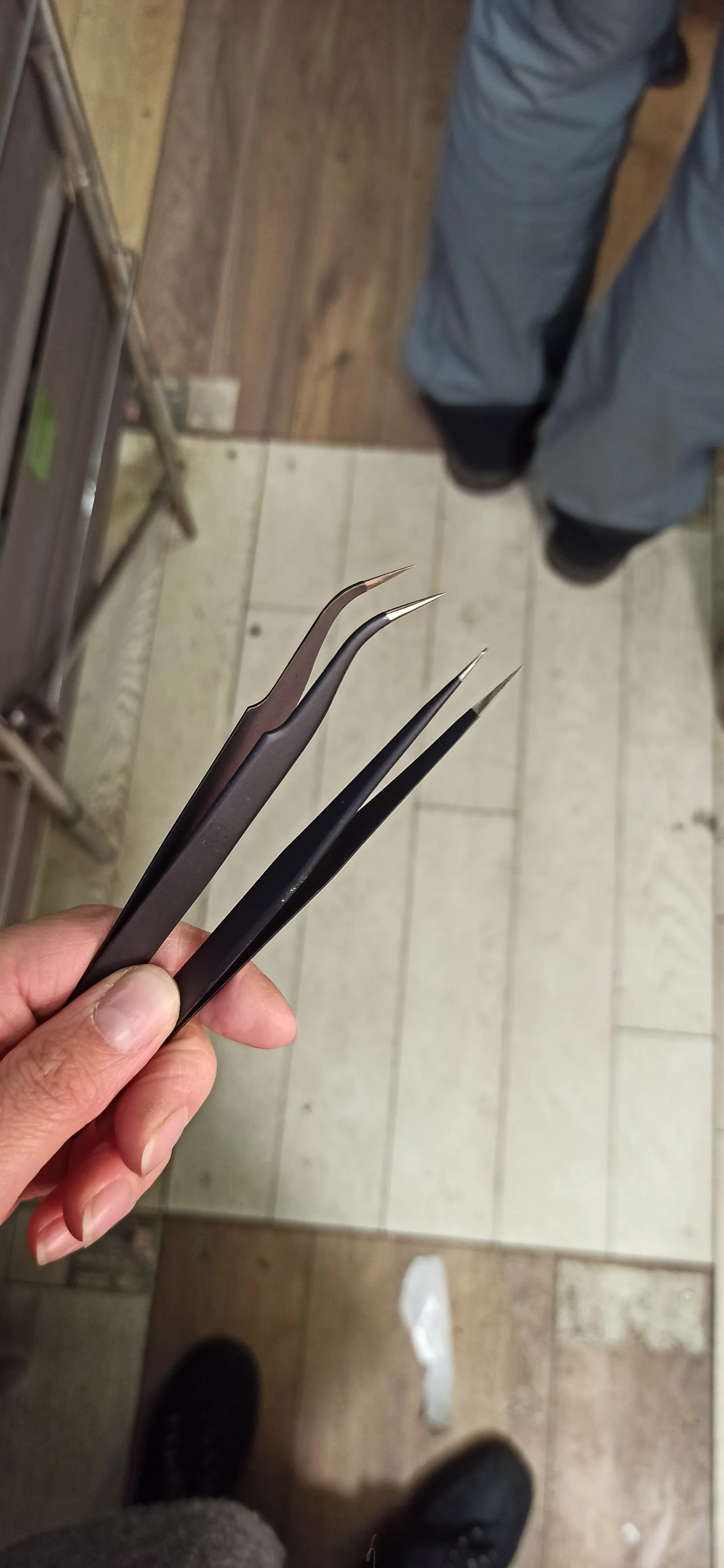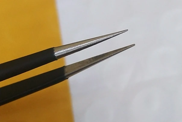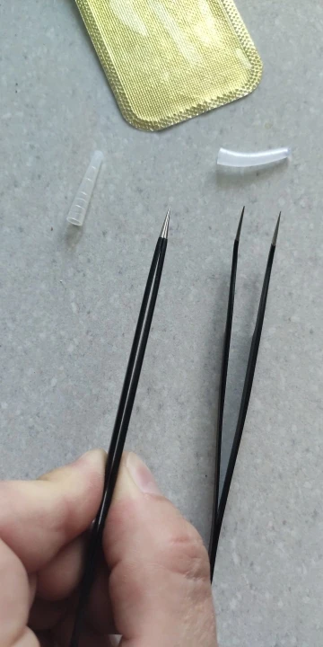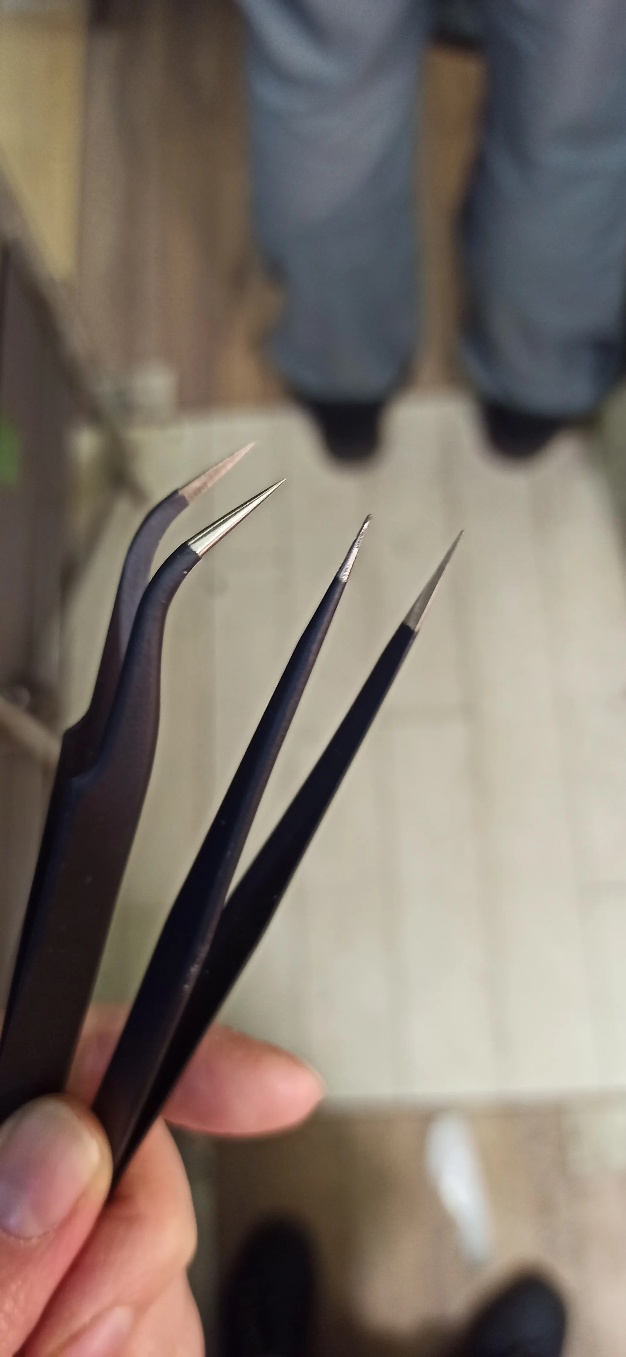Очень тонкие, очень острые, пальцы прокалываю регулярно. Для совсем мелочёвки от 0805 и меньше. Кто хочет дубовые пинцеты, это не сюда. Пришли за 17 дней.