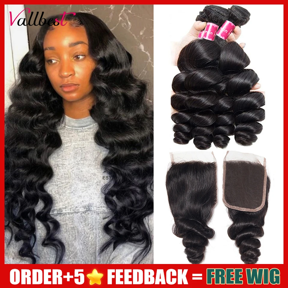 Волпряди Vallbest с застежкой, человеческие волосы, 3 пряди с застежкой на шнуровке, бразильские пучки волос, пучки для наращивания волос без повреждений
