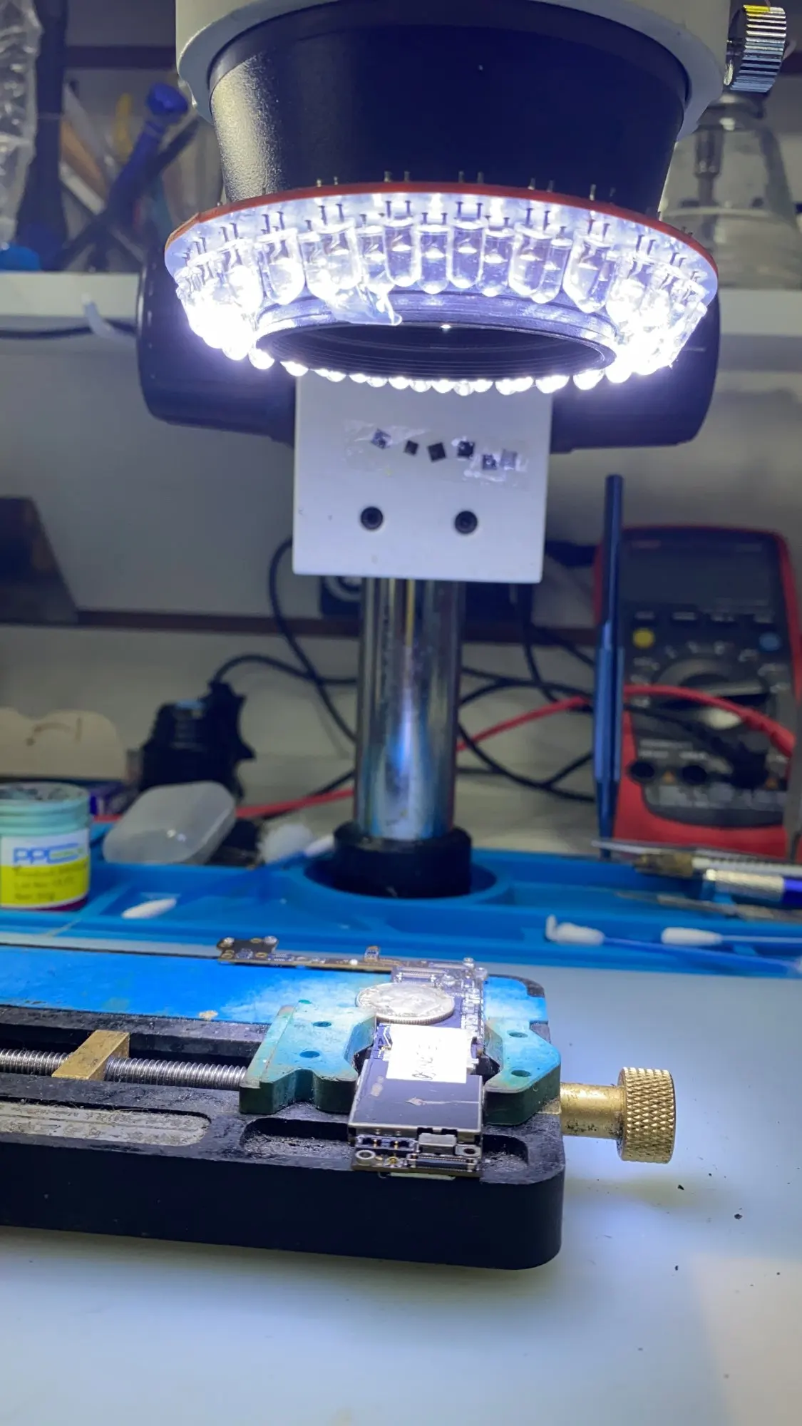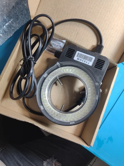 17 дней доставка, всё подошло к микроскопу 10x180x, регулировка освещения плавная (10 секций, но заметное освещение начинается с 4 положения), мерцаний на камере нет в любом положении регулировки освещения(использую веб камеру logitech c270).