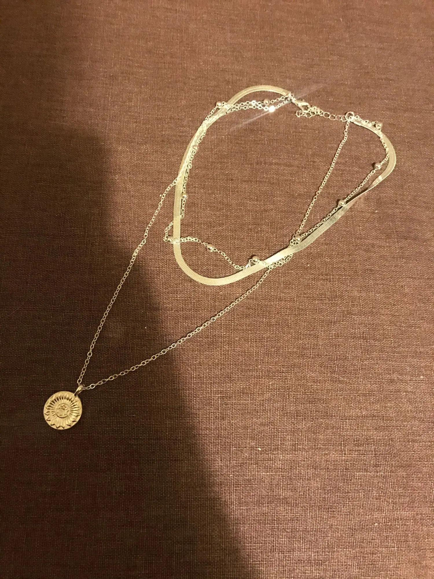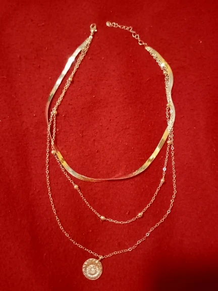 хорошее колье, но немного хлипкое. состоит из 3 отдельных цепочек. 2 нижние спаяны в одну. все понравилось)