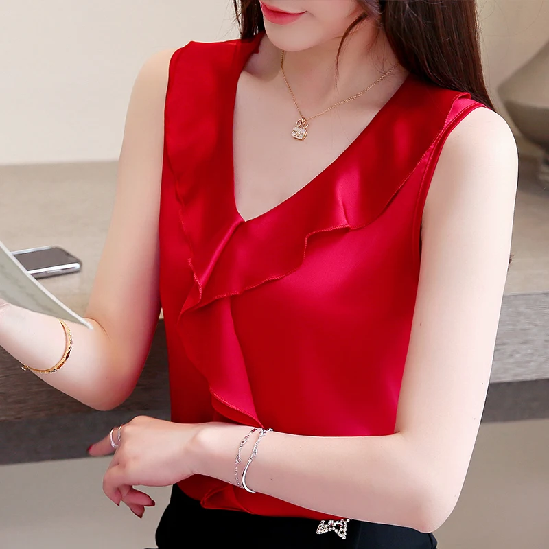 Модные женские блузки больших размеров без рукавов с вырезом в форме буквы V шифоновая блузка рубашка блуза Летняя Женские рубашки топы и блузки Z07 50