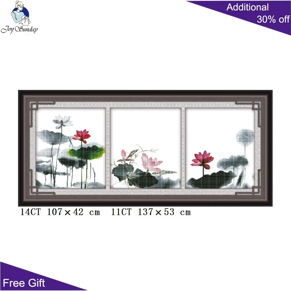 Joy Sunday Lotus домашний декор H063 H182 H285 14CT 11CT Счетный штамп смайлик Триптих летние цветы лотоса наборы крестиков
