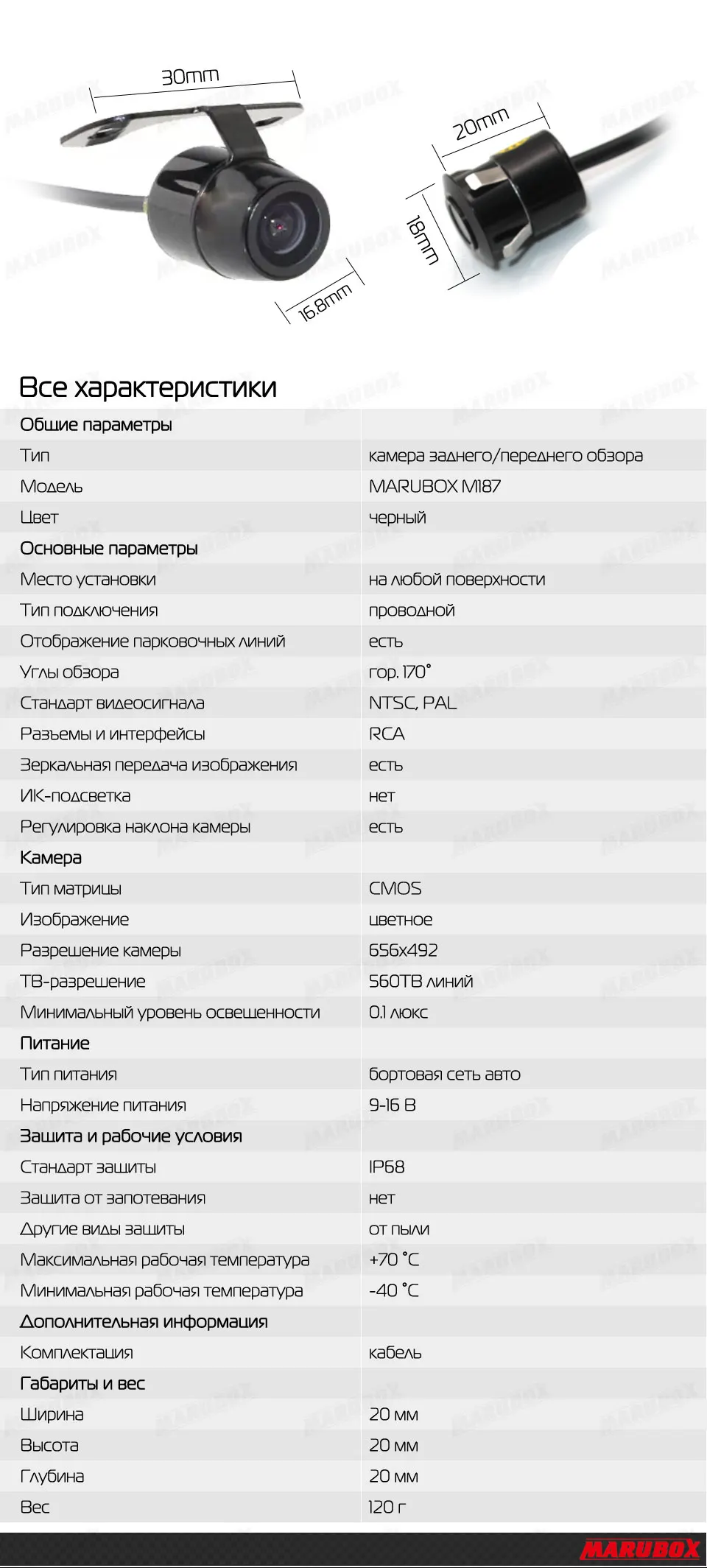 Покупал камеру для установки на перед авто. В характеристиках написано угол обзора 170 градусов. Это не так обзор где-то 100 градусов. а так все нормально качество вроде хорошее.