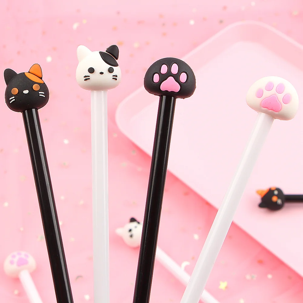 Гелевая ручка в виде кошки, 4 шт.лот, Kawaii, с черными чернилами