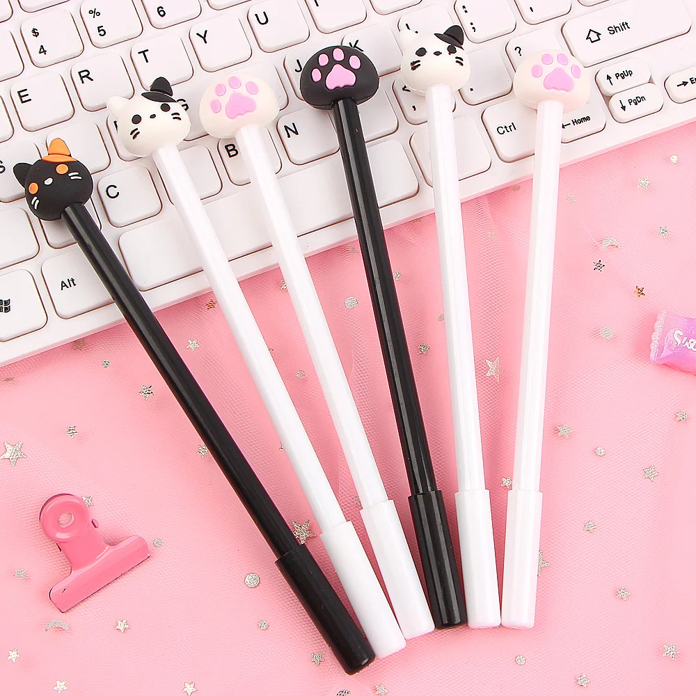 4 шт.лот Симпатичные гелевая ручка Kawaii Cat Черный цвет чернил 0,5 мм для Wrting Канцелярские Творческий подарок, офисные и школьные принадлежности