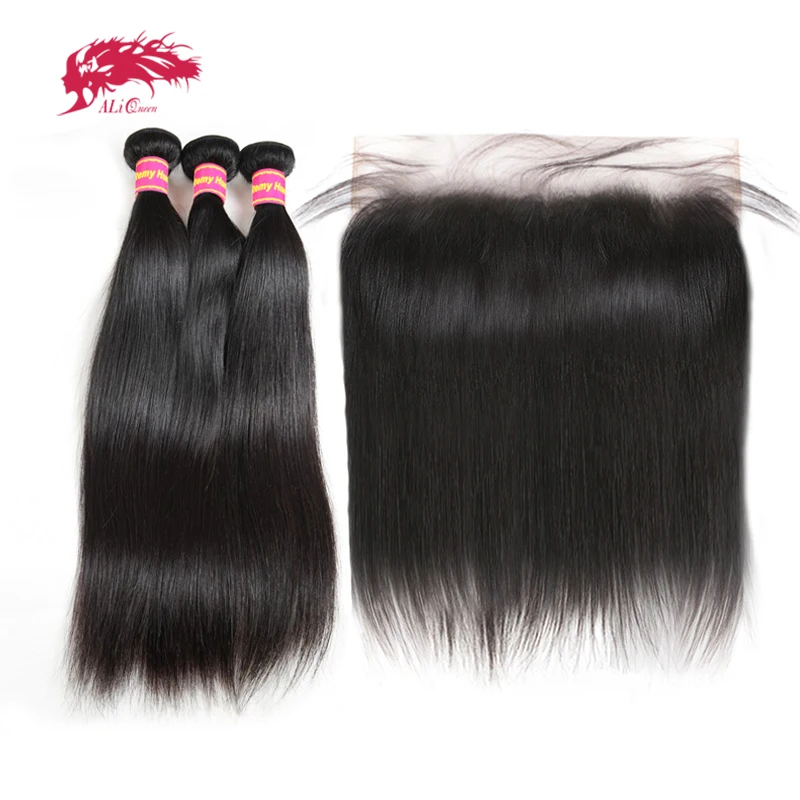 Бразильпряди с застежкой 13x4, фронтальная кружевная свободная часть, волнистые волосы Ali Queen, человеческие волосы без повреждений с фронтальной застежкой на шнуровке HD