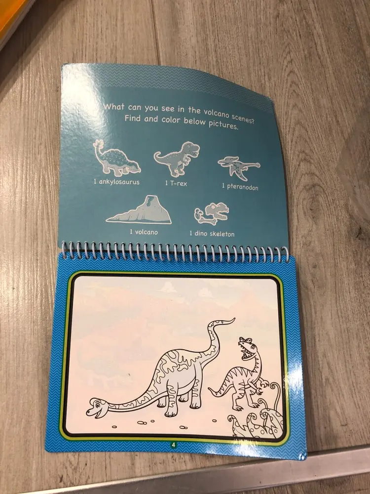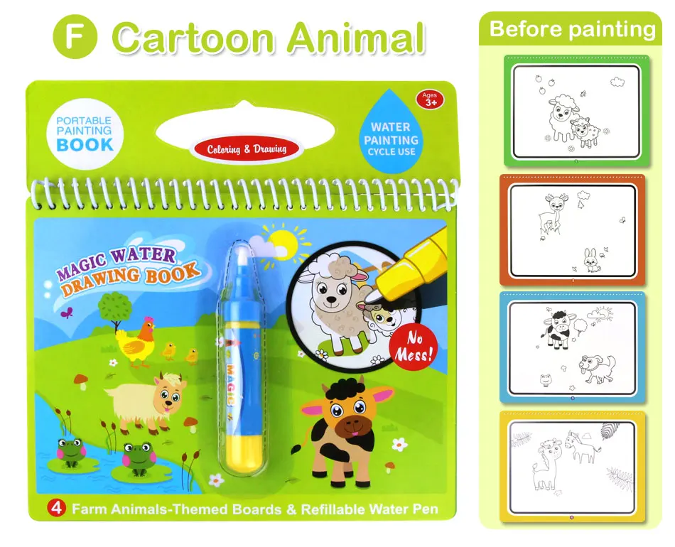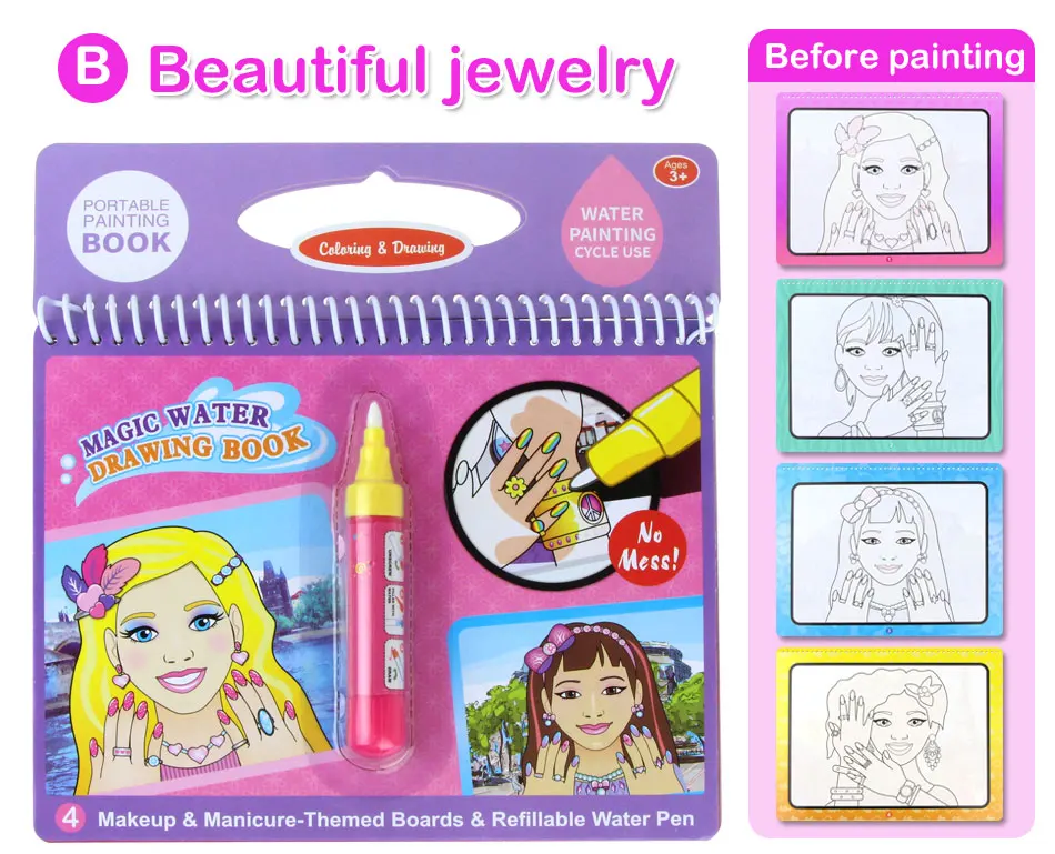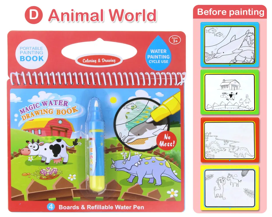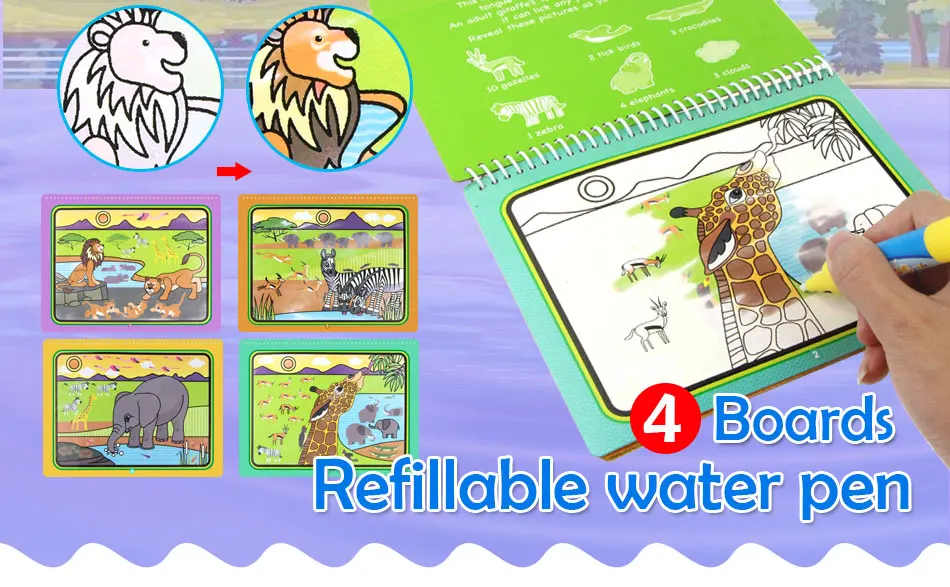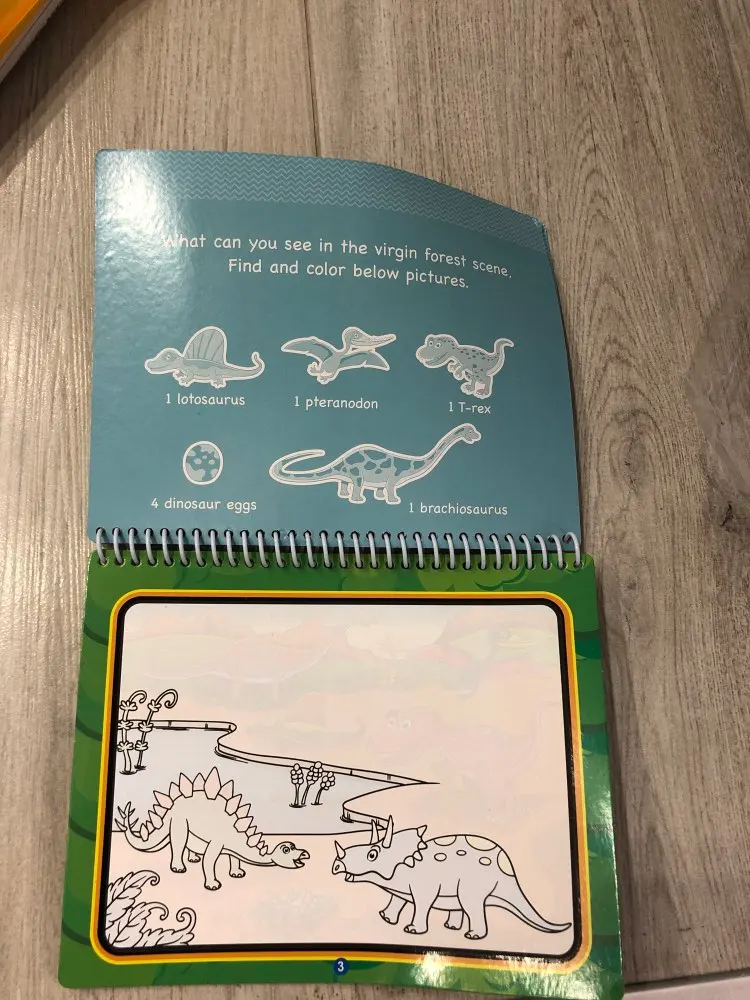 Отличная книжка. Ребенку в 2 года интересно. Только он слишком сильно нажимает на карандаш. А в мокром состоянии покрытие можно легче сцарапать. Стали пользоваться водяным пистолетом. Продавец в подарок положил страшненький брелок