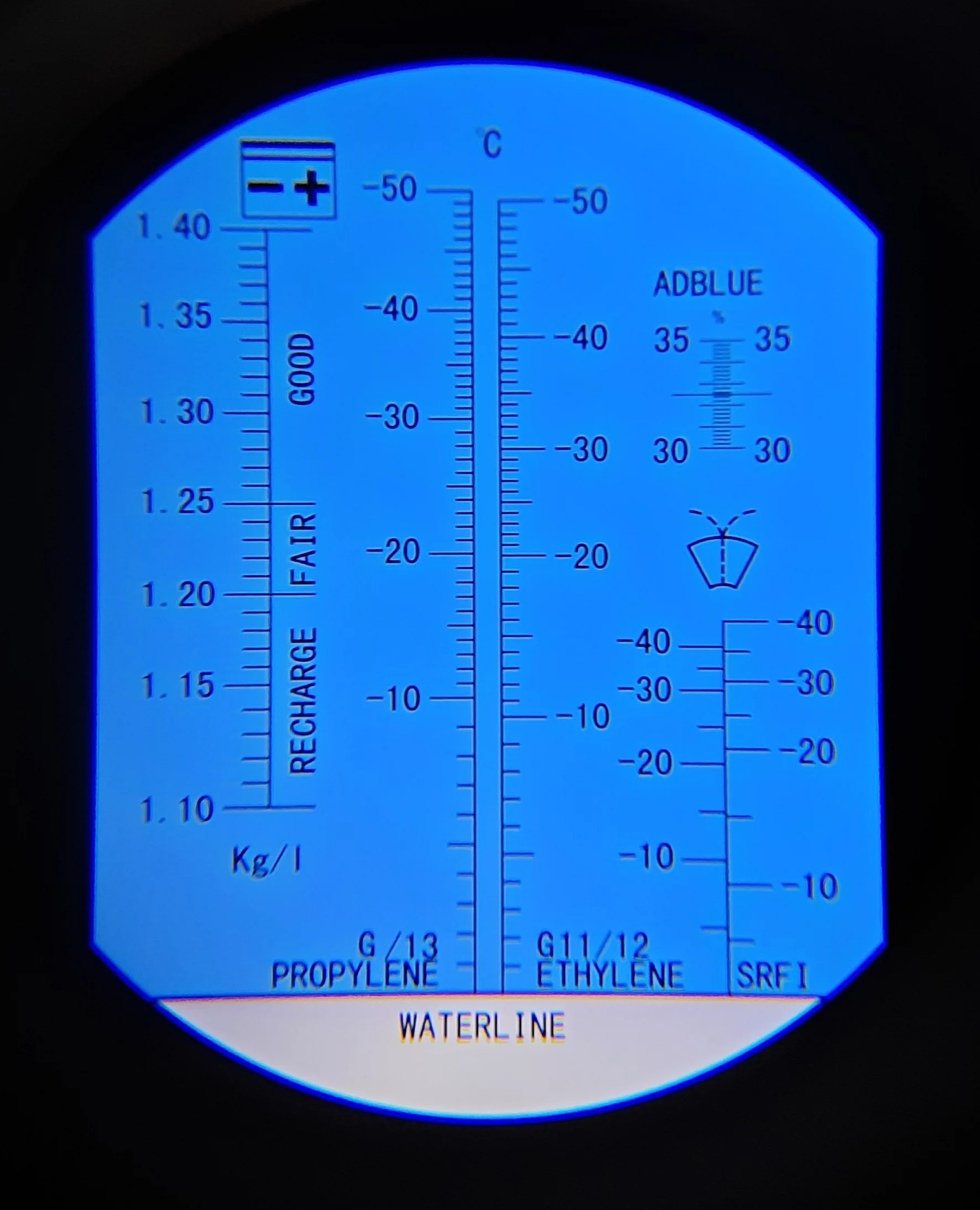 Был откалиброван, измерял омывашку показывает не понятно что, может конечно жидкость сомнительная. На охлаждающей жидкости показывает верно