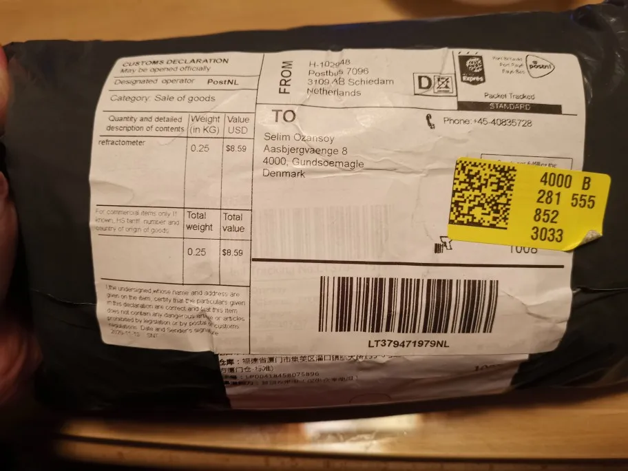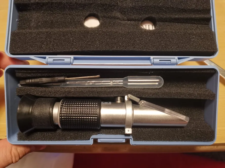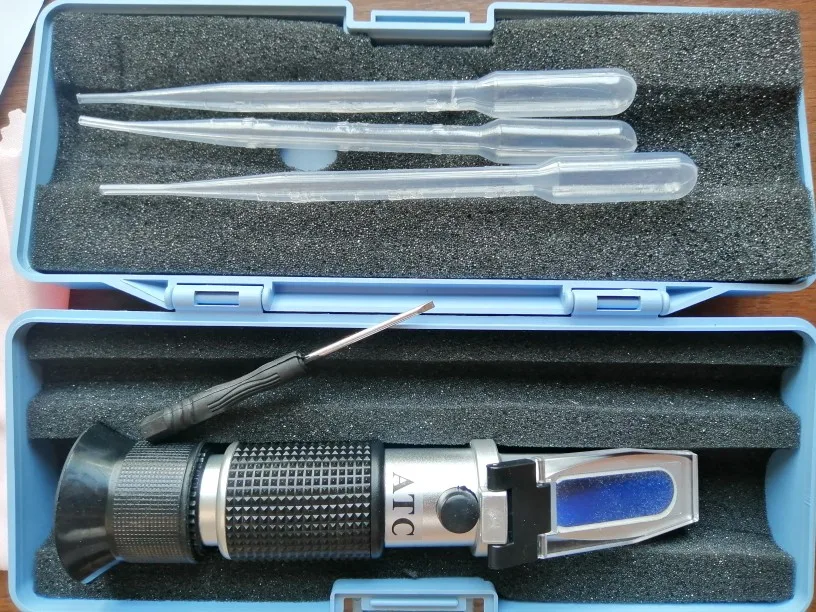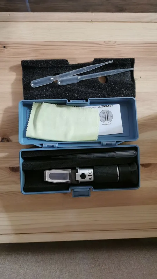 заказ приехал быстро, только вот ощущение что рефрактометр собран из остатков на производстве, все болтается, поролон не подходит для прибора, нет специально вырезанного места под сам прибор и под пипетки, пипетки огромные на 3 мл, аж 3 шт, запихали все в пластиковую коробочку как попало и отправили. на рабочем стекле нашел маленькие царапинки, на точность измерения вроде не влияет