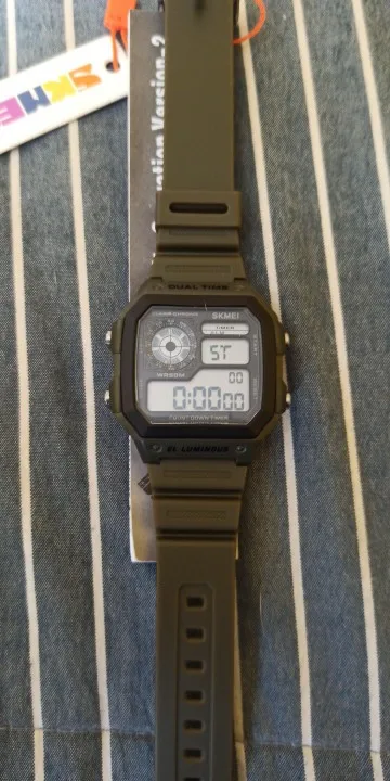 Получил быстро. Через Голландию. Чёрные. Цена смешная. Пластик по ощущению и на запястье ок. Работают. Подсветка слабее,чем ожидал. Настройки работают. Таймер назад отсчитывает. Секундомер вперёд бежит. Будильник работает. Сигнал более менее ок. Посмотрим как будет с ходом и прочностью ремешка. Оценка: за такие деньги (7евро) в огороде норм. Прикольное добавление к моим Longines. Кто хочет, можете покупать.