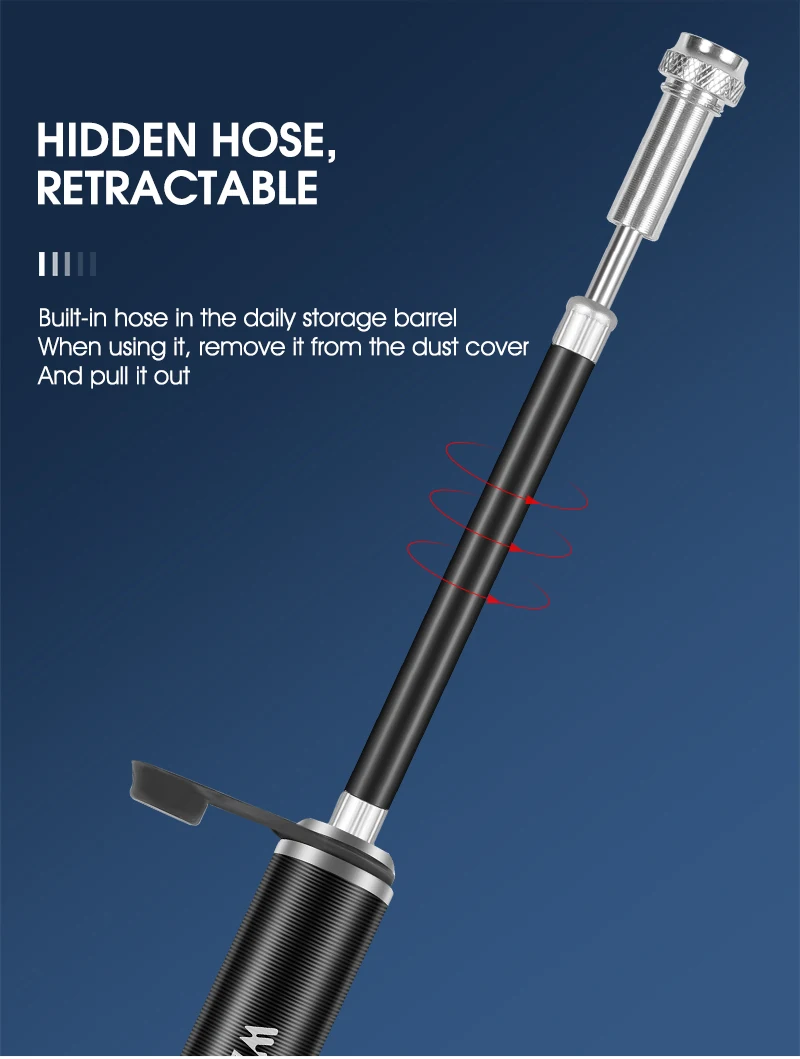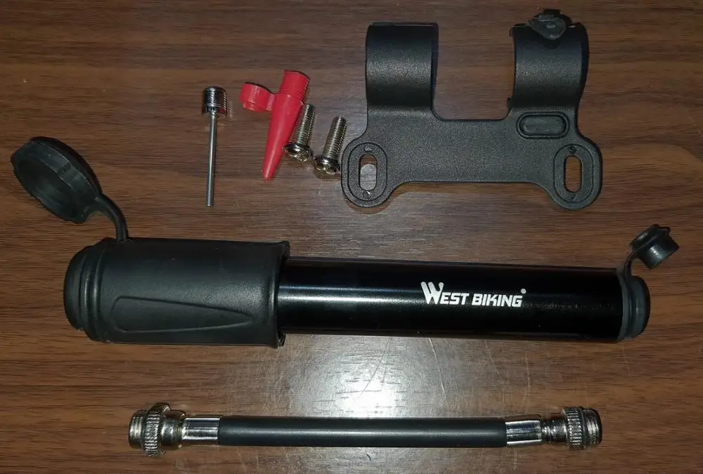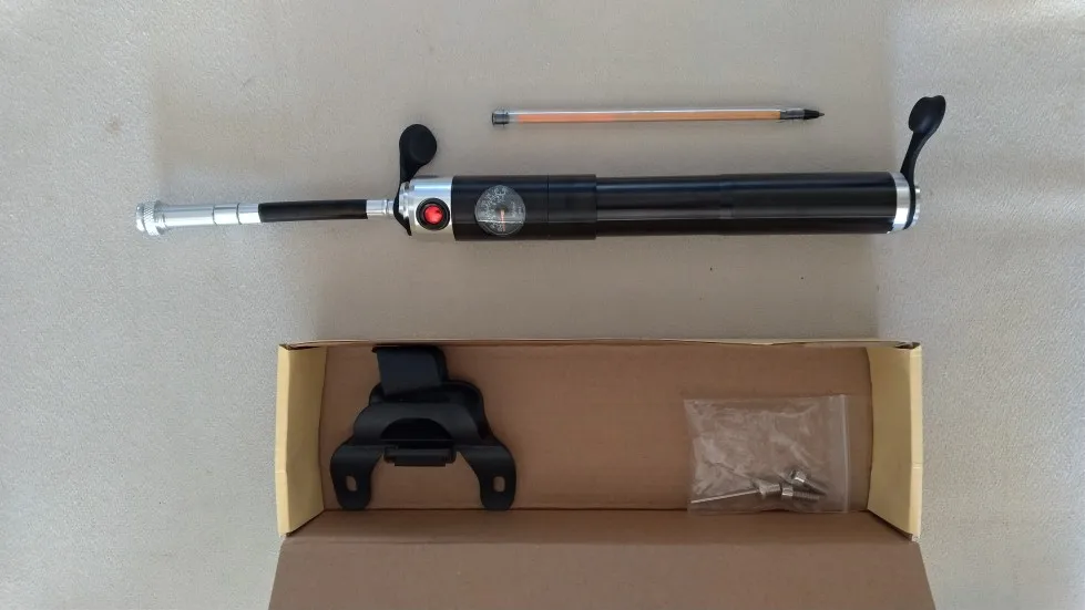 Этот насос позволяет накачивать шины (немного длинные, но они работают) и пневматические вилки.